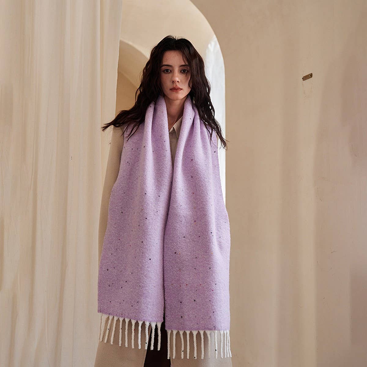 50% Wool Blend Speckled Yarn Scarf - Winter Cozy_CWASC2372