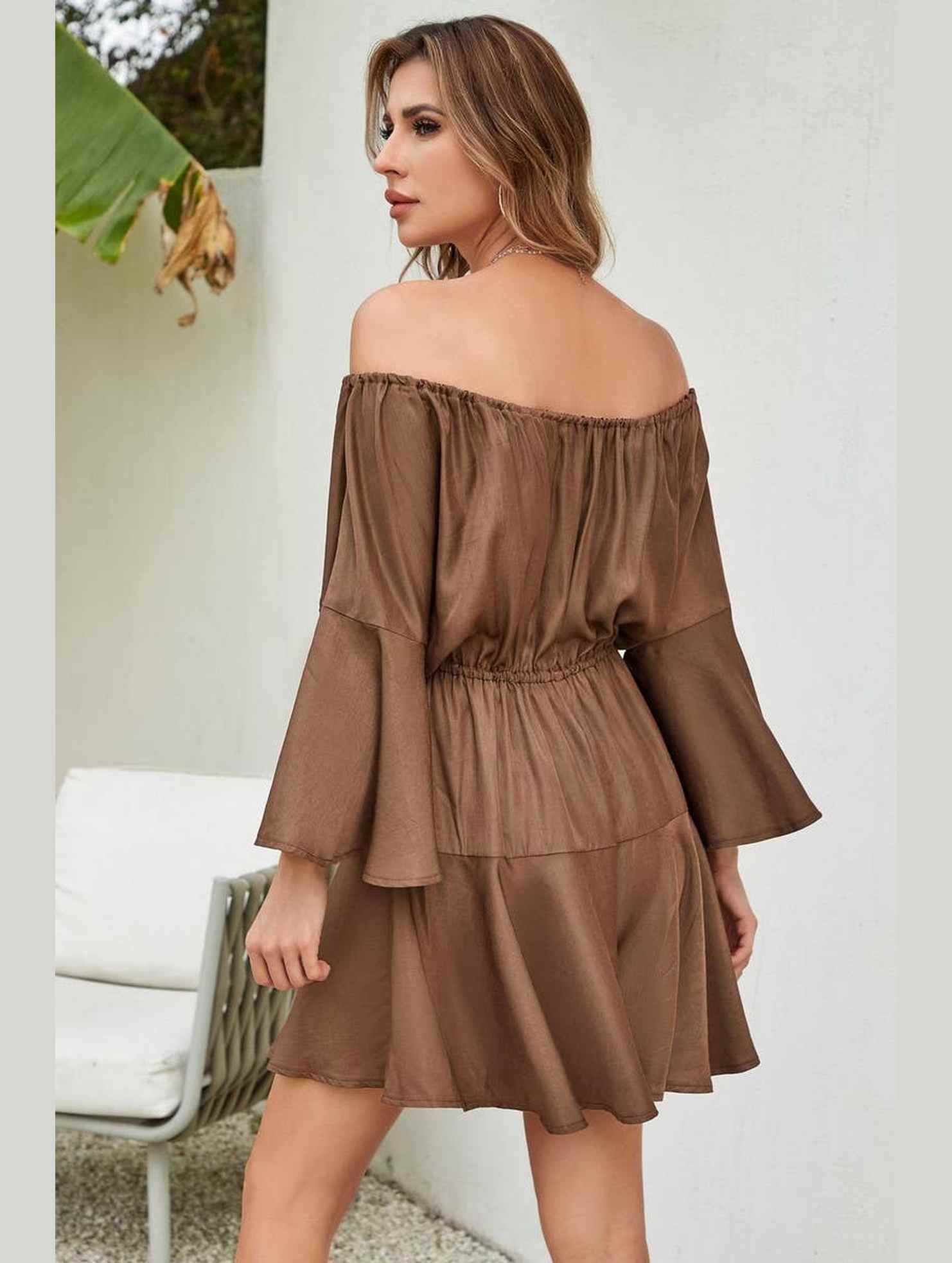 A LINE NECK DRAWSTRING FLARED SLEEVE JUMPSUIT
