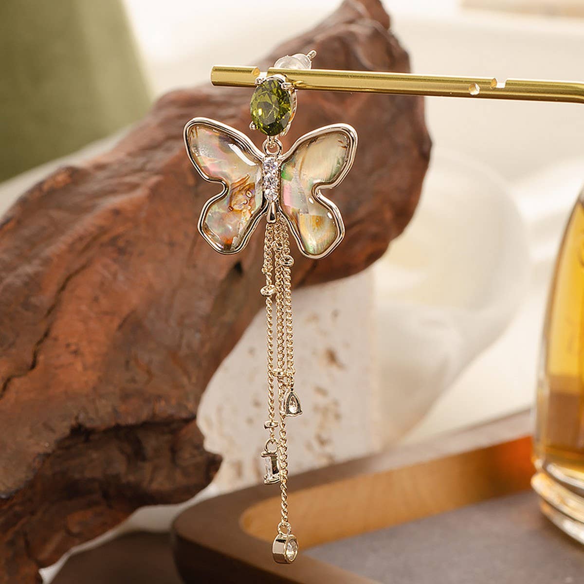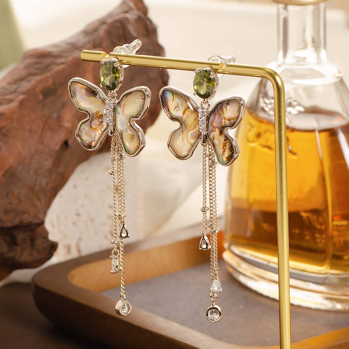 ABALONE TASSEL EARRINGS WITH DIAMOND AND ZIRCONIA