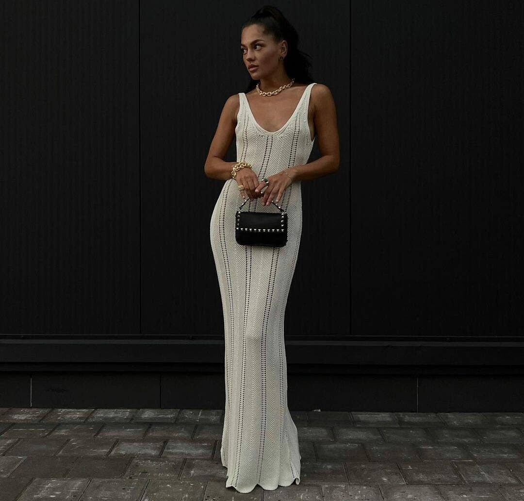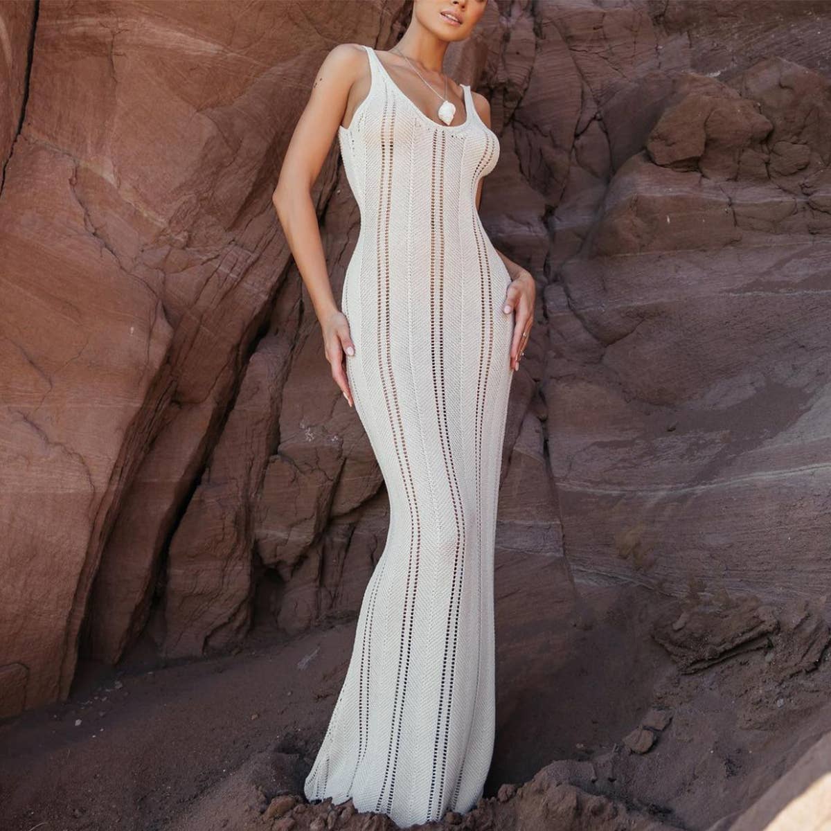 BARE BACKPACK HIP KNITTED BEACH SKIRT SMOCK DRESS