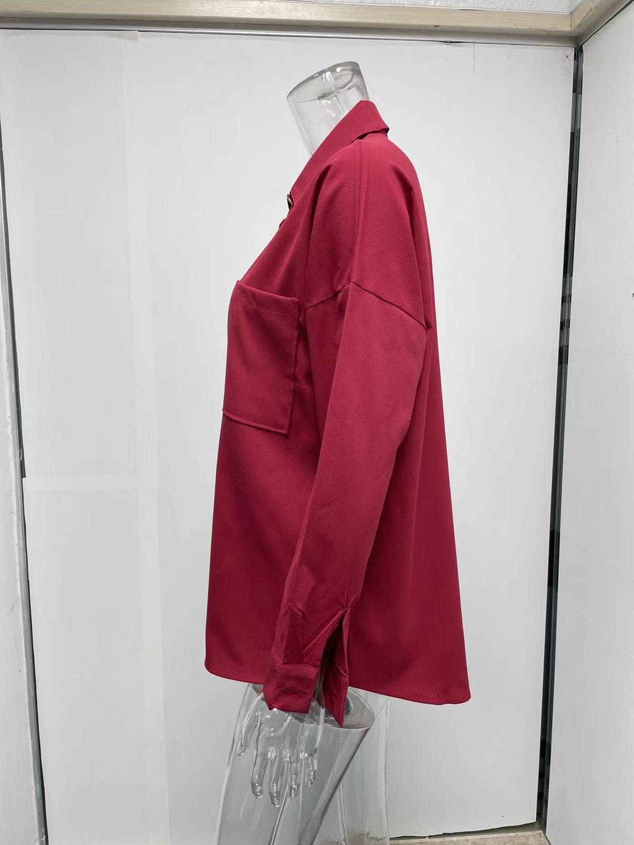 BAT-SLEEVED CASUAL SOLID COLOR LONG-SLEEVED SHIRT