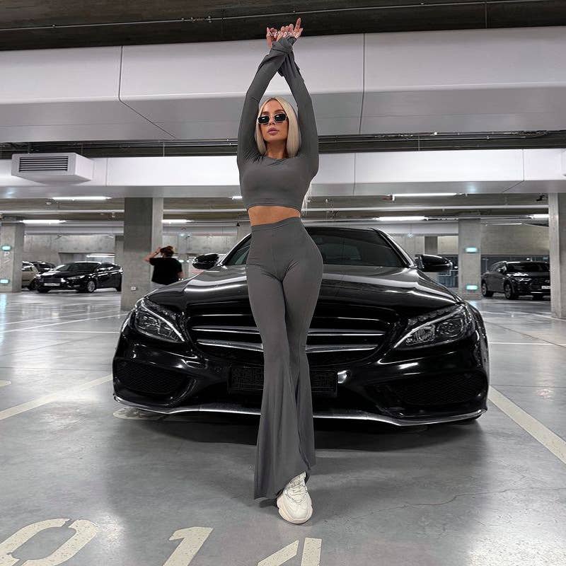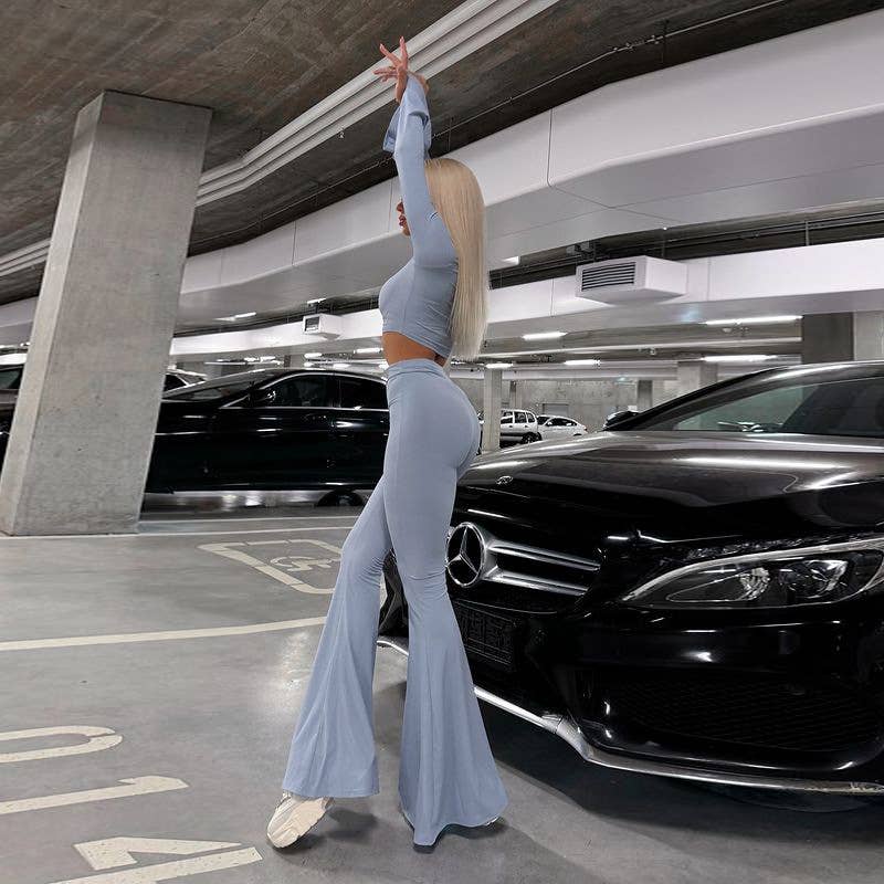 Bell Sleeve Crop Top & High Waist Flare Pants Set