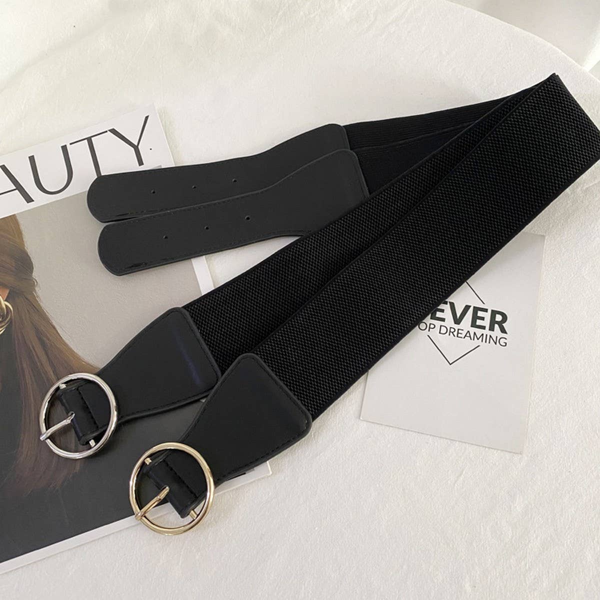 BLACK OUTER ELASTIC ROUND BUCKLE WAIST SEAL