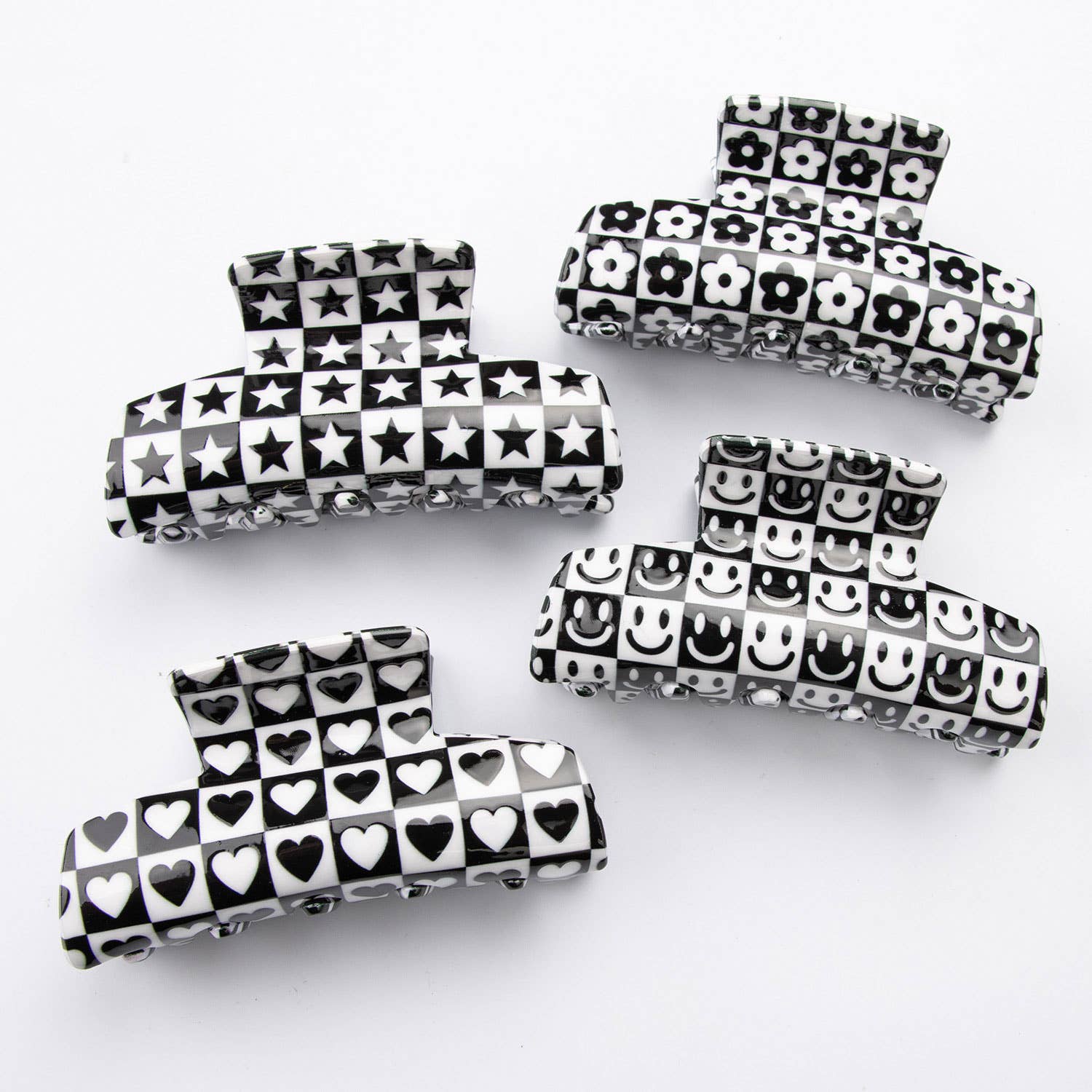 Black White Plaid Hair Claw - Retro Chic Clip_CWAHA0312