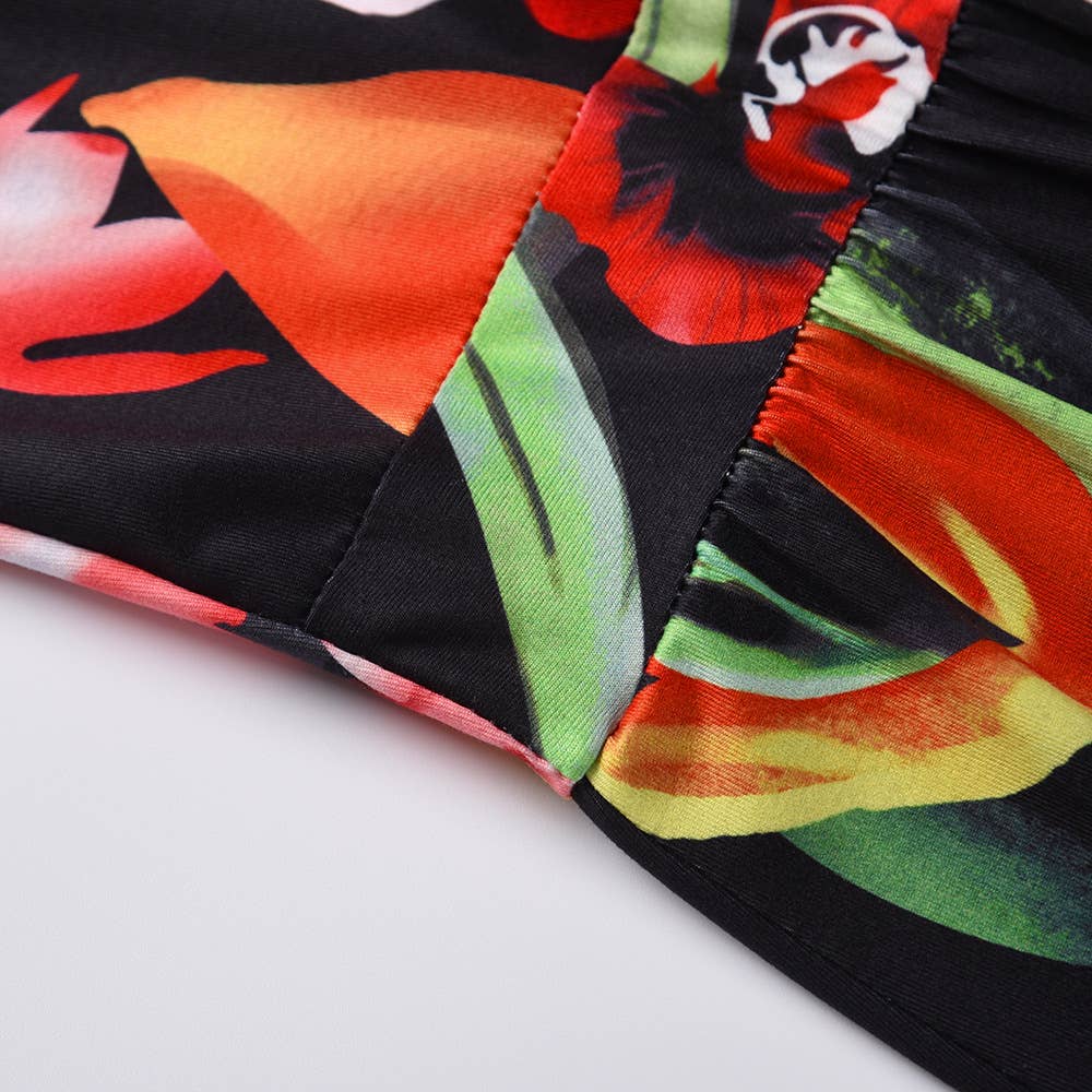 Bohemian Floral Print Spaghetti Strap Long Dress