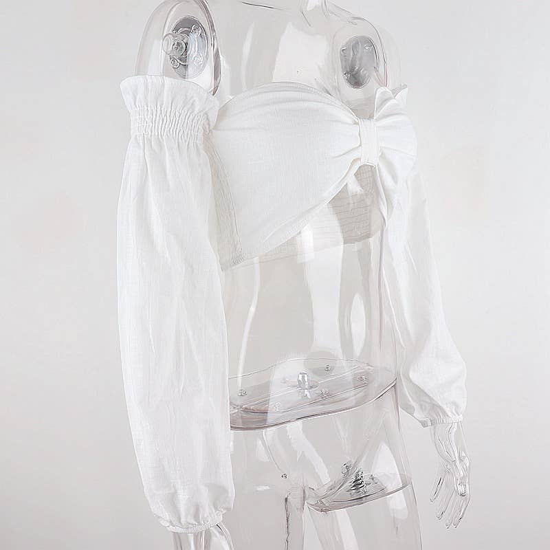 Bow Knot Cropped Long Sleeve Top