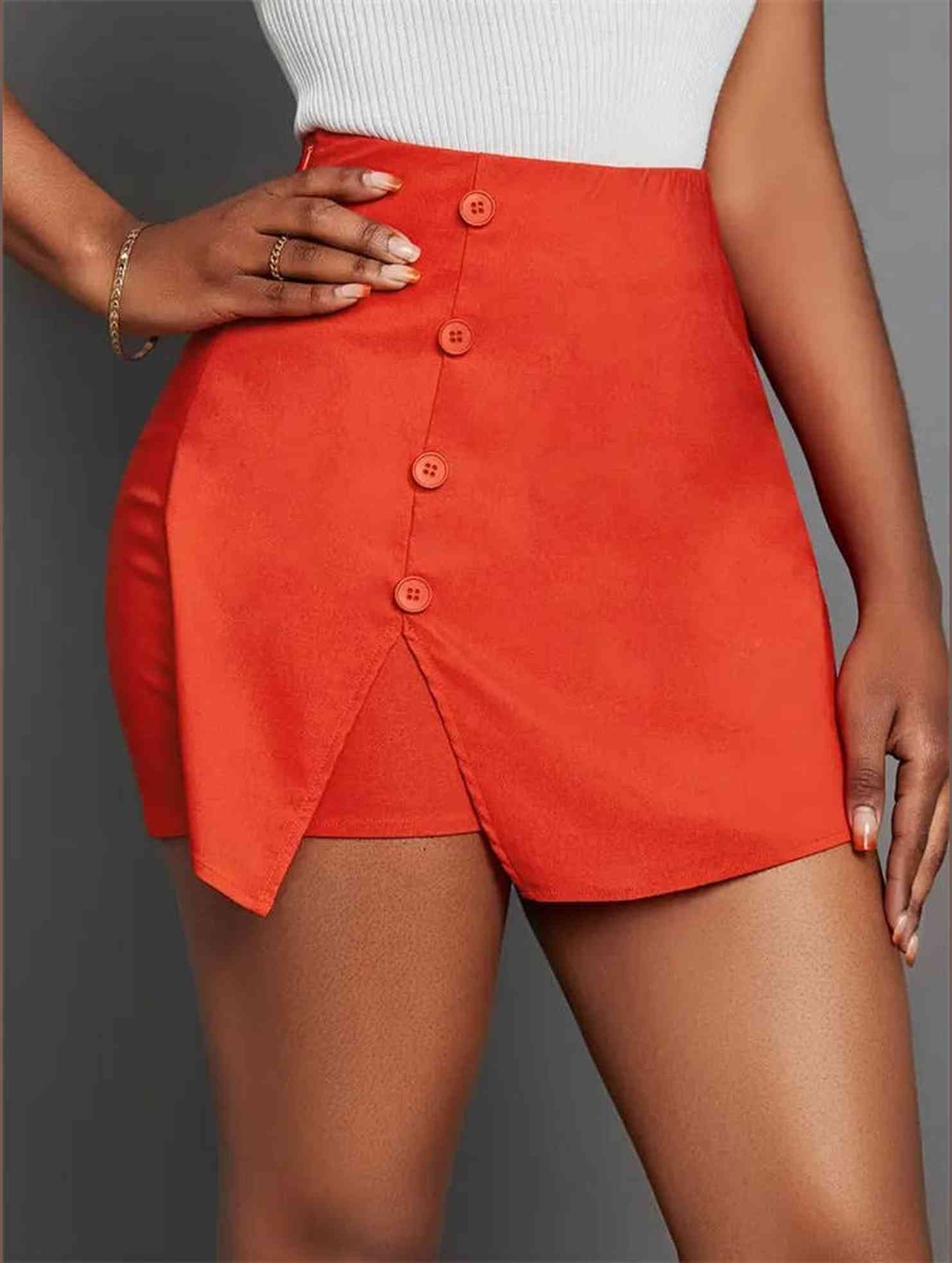 BUTTON-EMBELLISHED SOLID COLOR SPLIT SKIRT_CWBSS0181