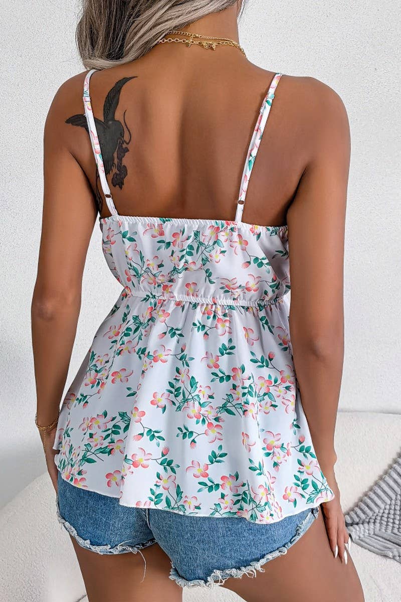 CASUAL FLORAL WAISTBAND CHIFFON SHIRT