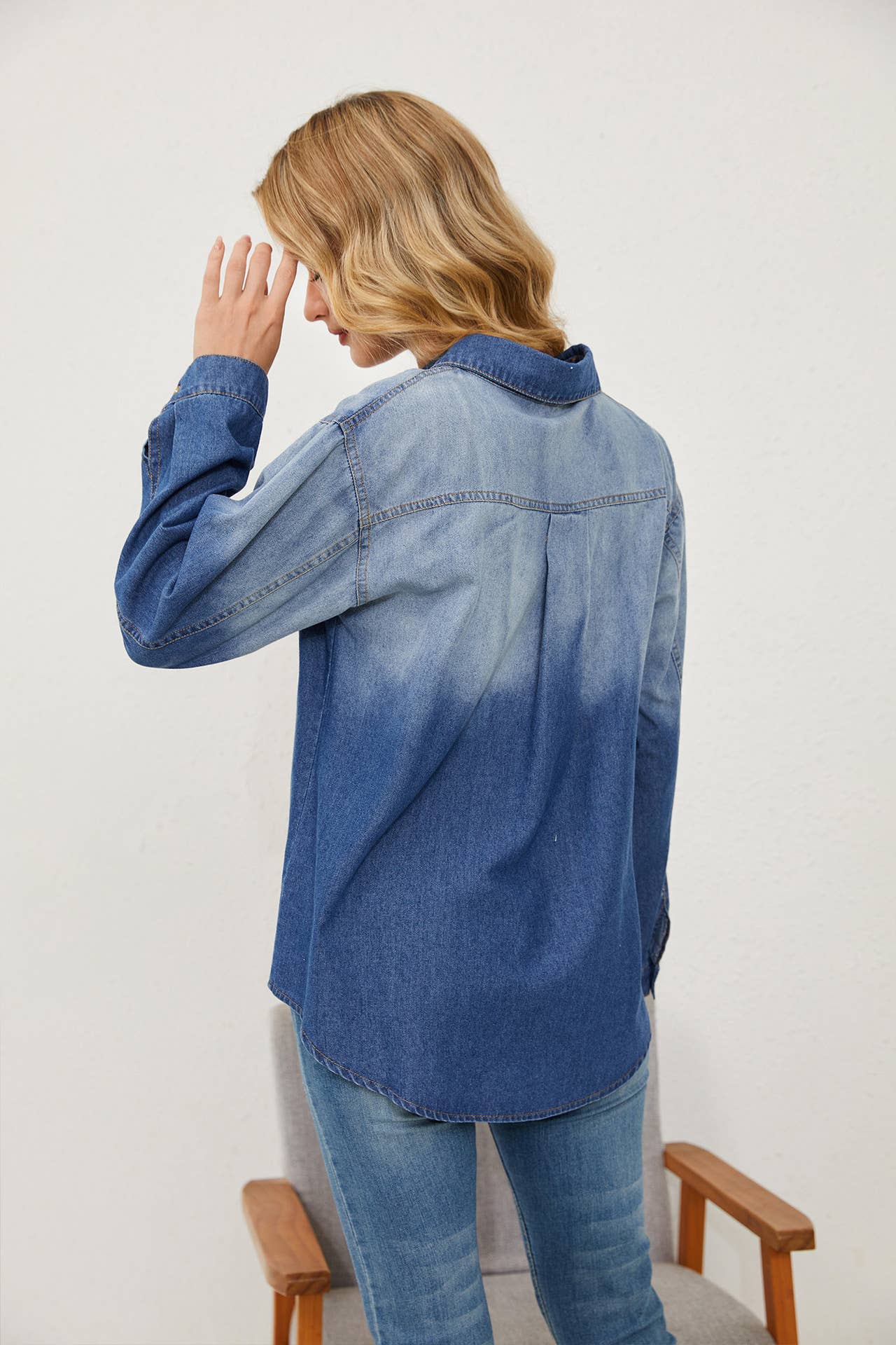 CASUAL LAPEL GRADIENT SINGLE-BREASTED DENIM SHIRT