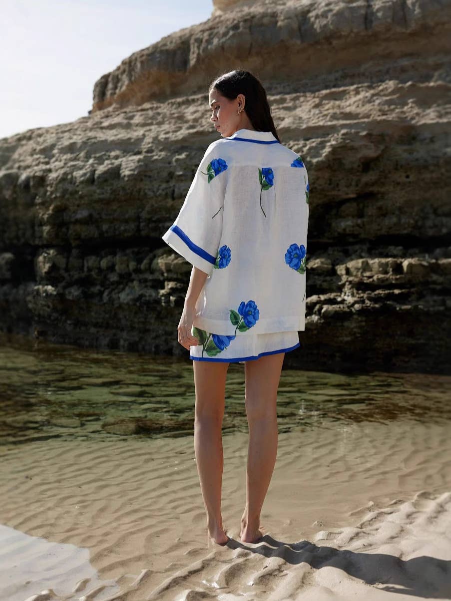 Casual linen shirt collar wrap hip skirt set