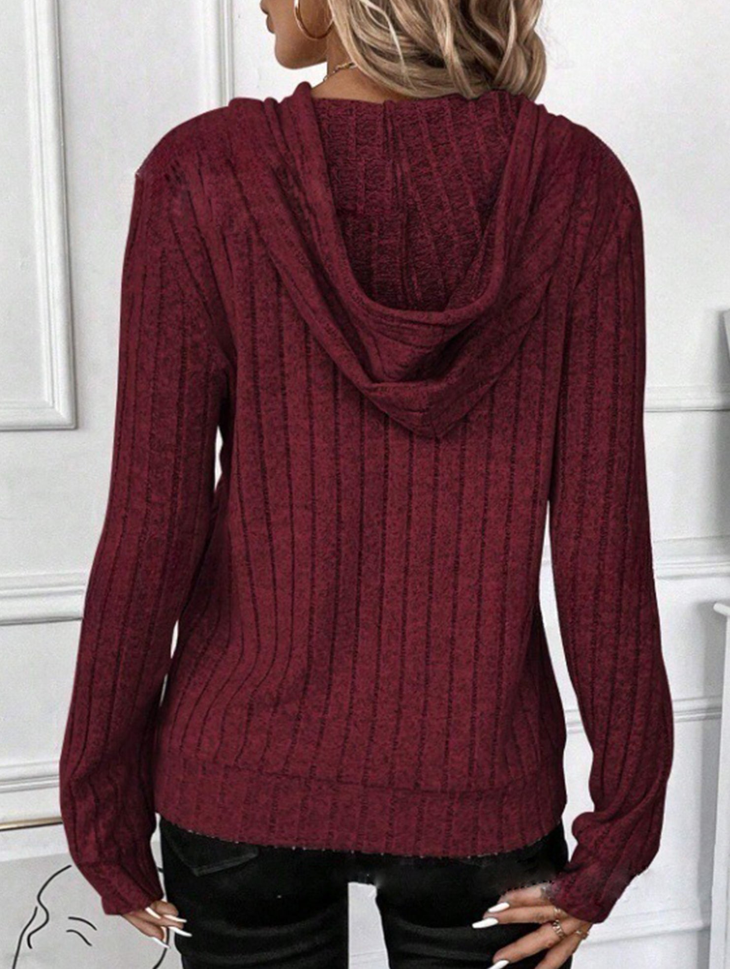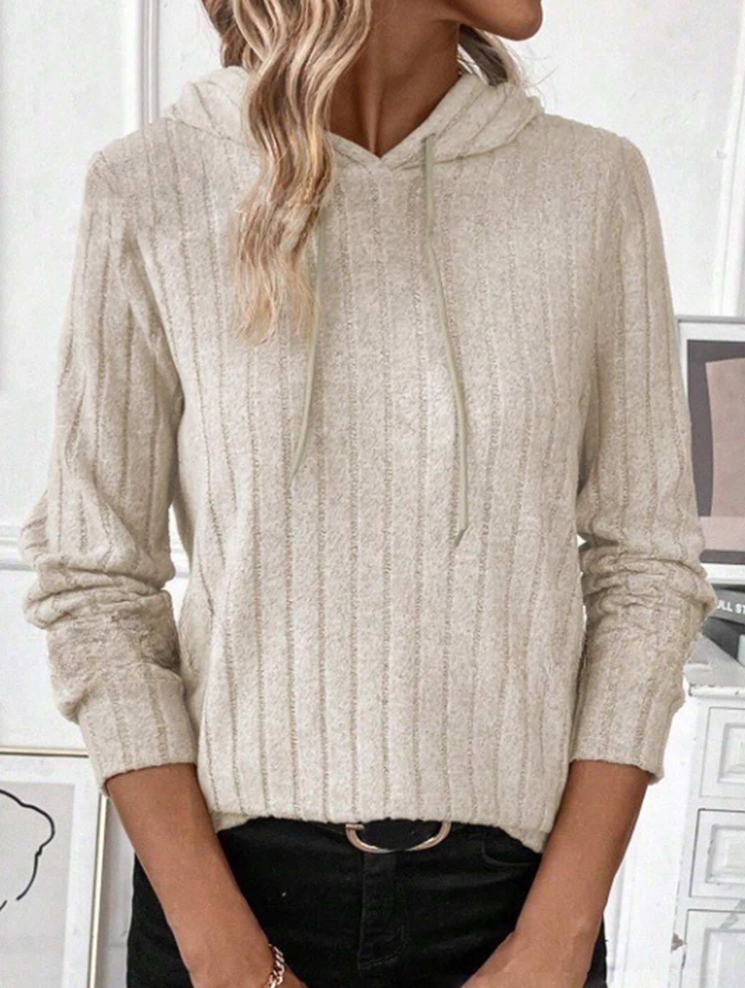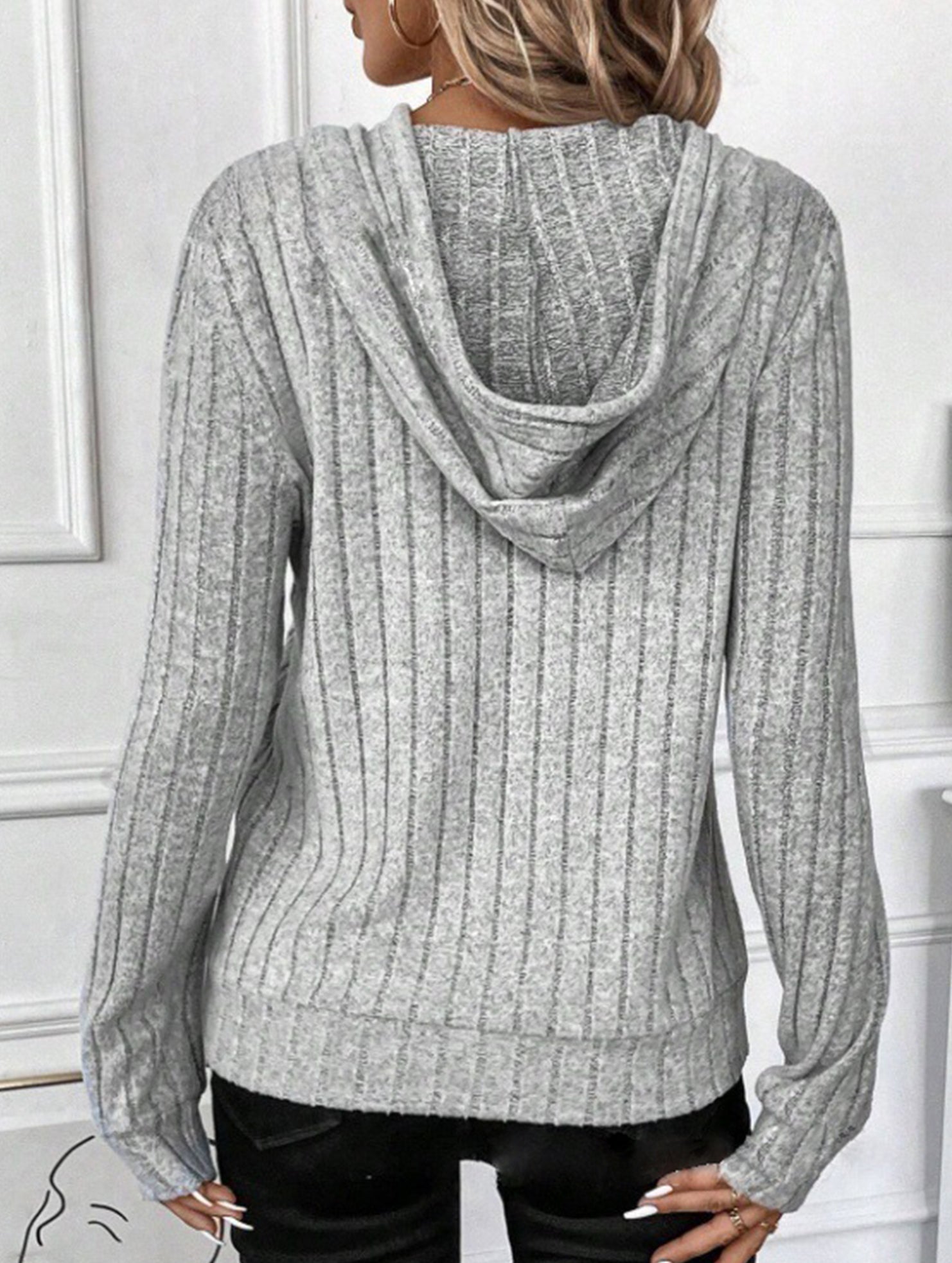 Casual ribbed hooded long-sleeved sweatshirt