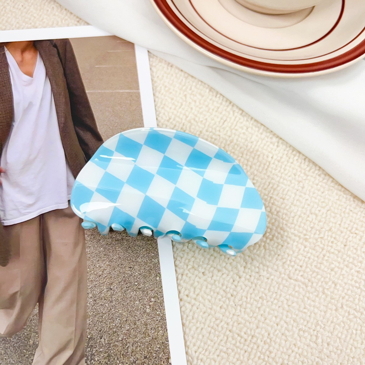 Checkerboard Hair Claw ??Candy Color Acetate Look_CWAHA0395
