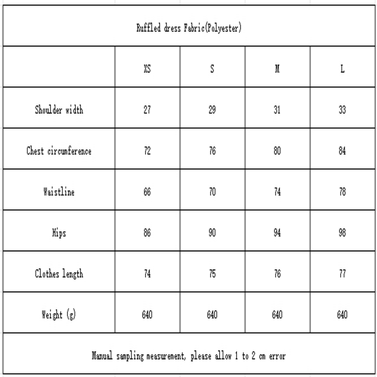 '- Material: Polyester (polyester fiber)\n- Size: XS, S, M, L\n- Weight: 640g