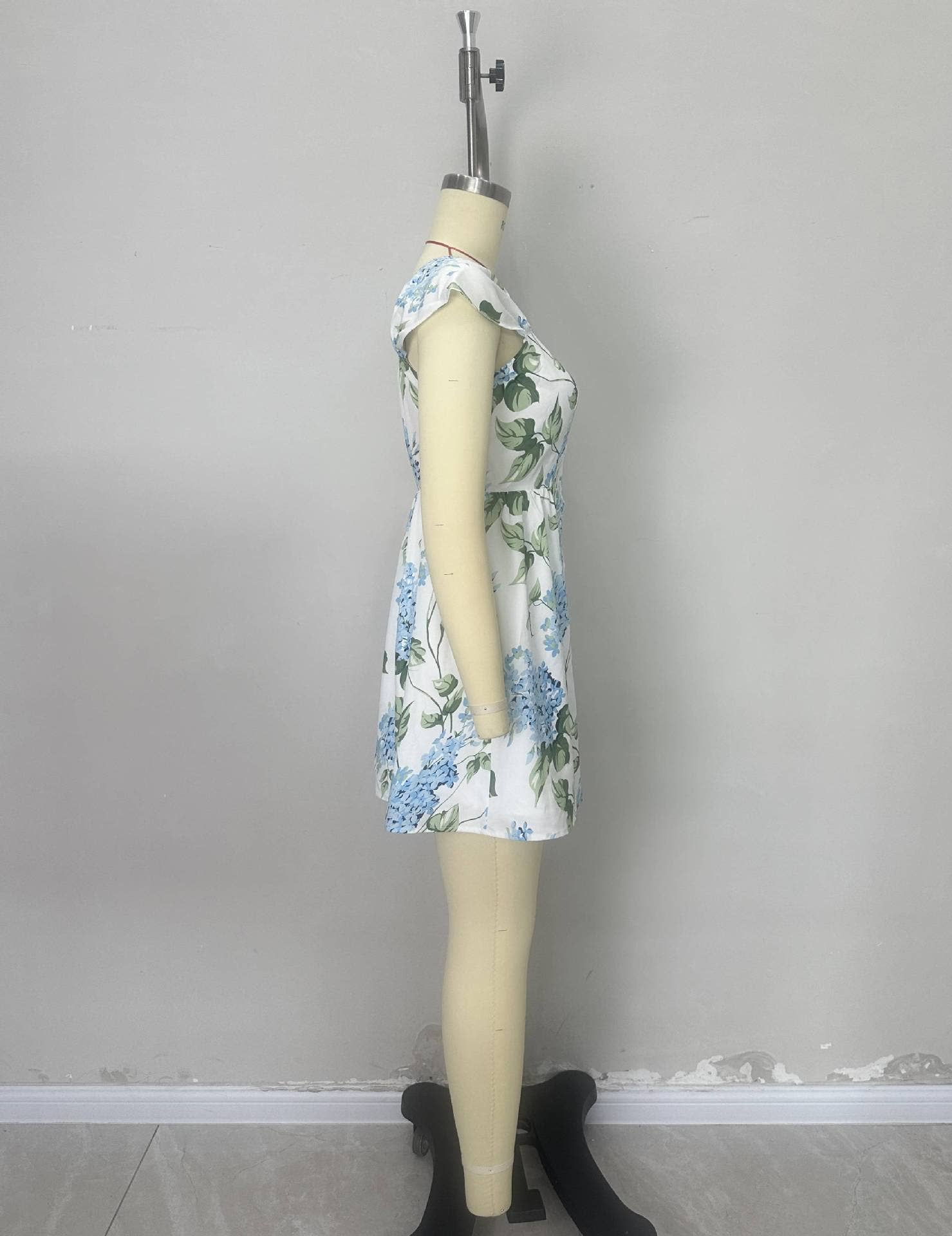 Cinched waist printe lace-up fashion short dress