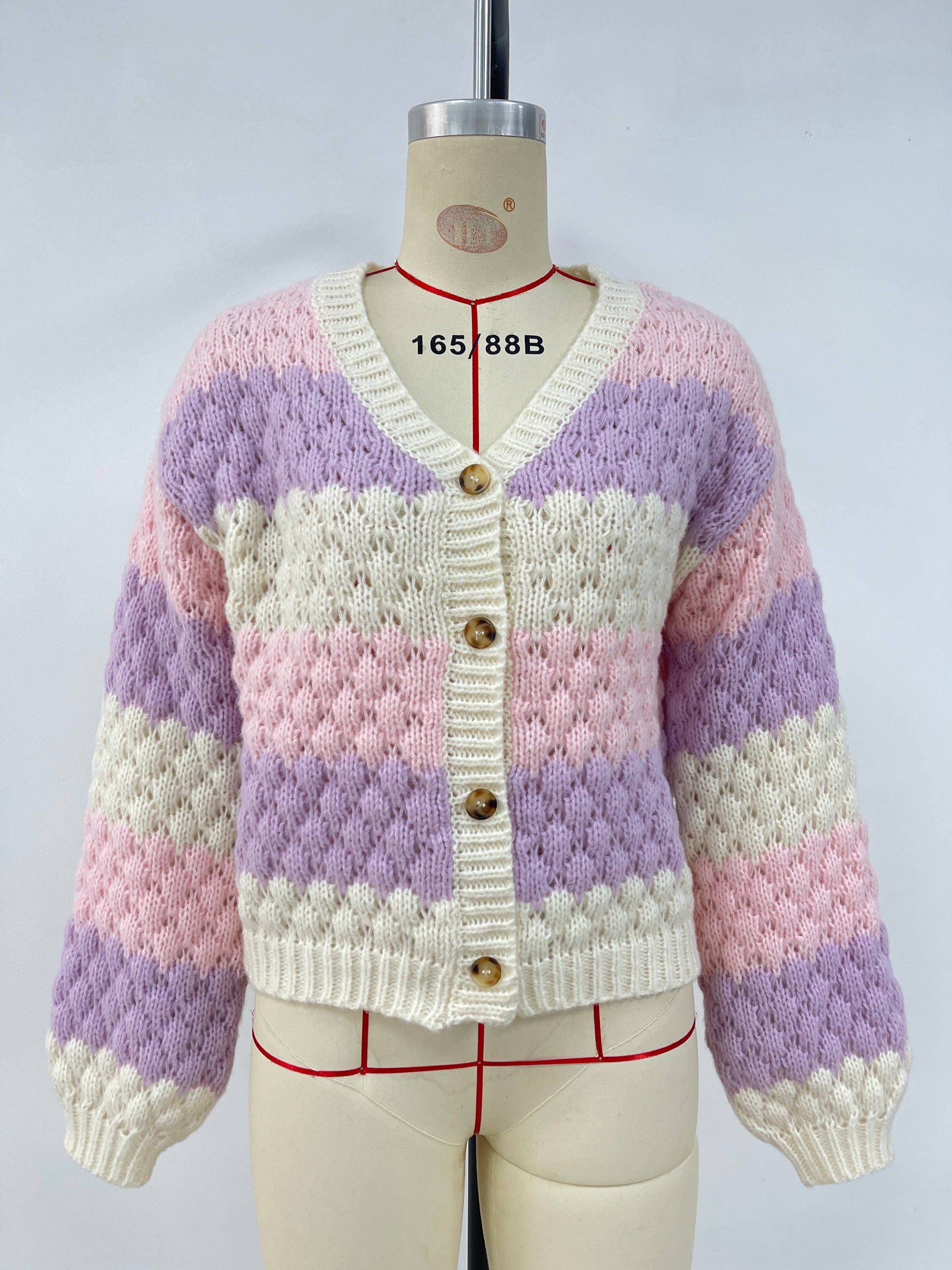 Color-blocking long-sleeved knitted cardigan