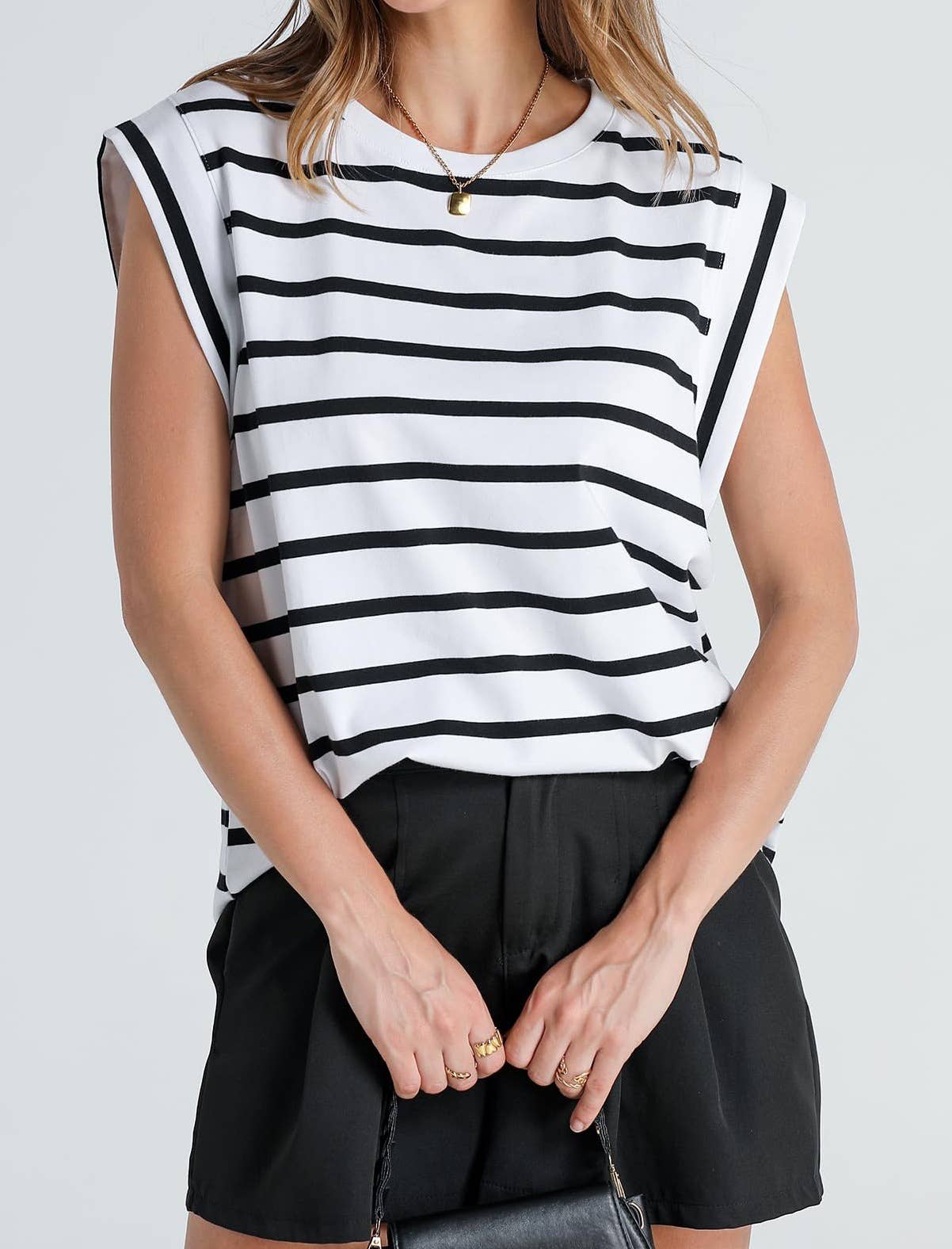 COLOR-CONTRAST STRIPED CREW NECK PULL-OVER VEST