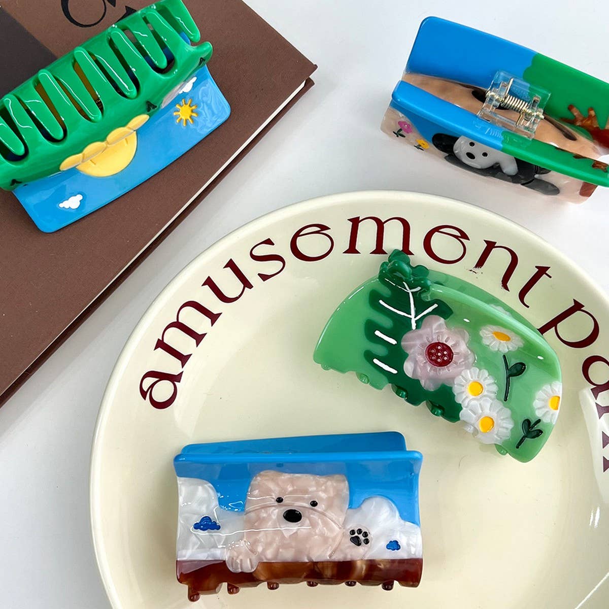 Colorblock Dog Acetate Hair Claw Cute Clip