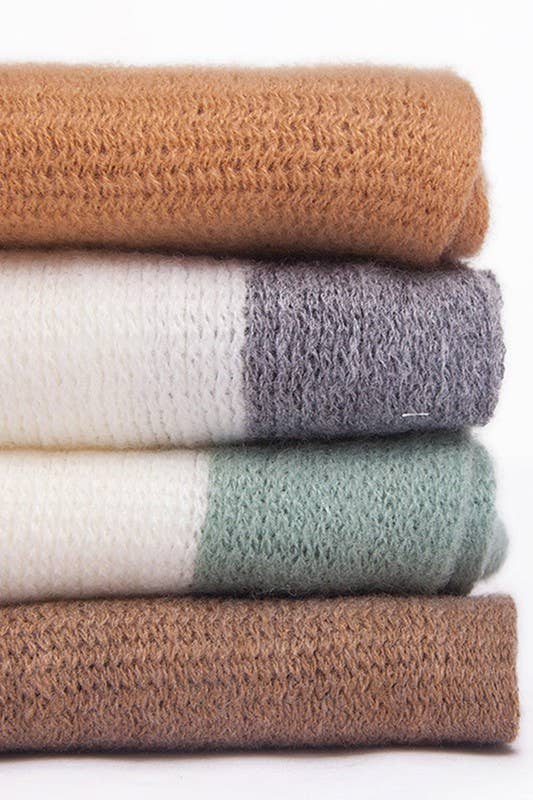 Colorblock Knit Scarf ? Long Fringe Winter Wrap