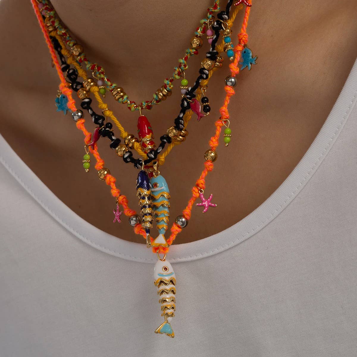 Colorful Enamel Fish Rope Necklace for Vacation