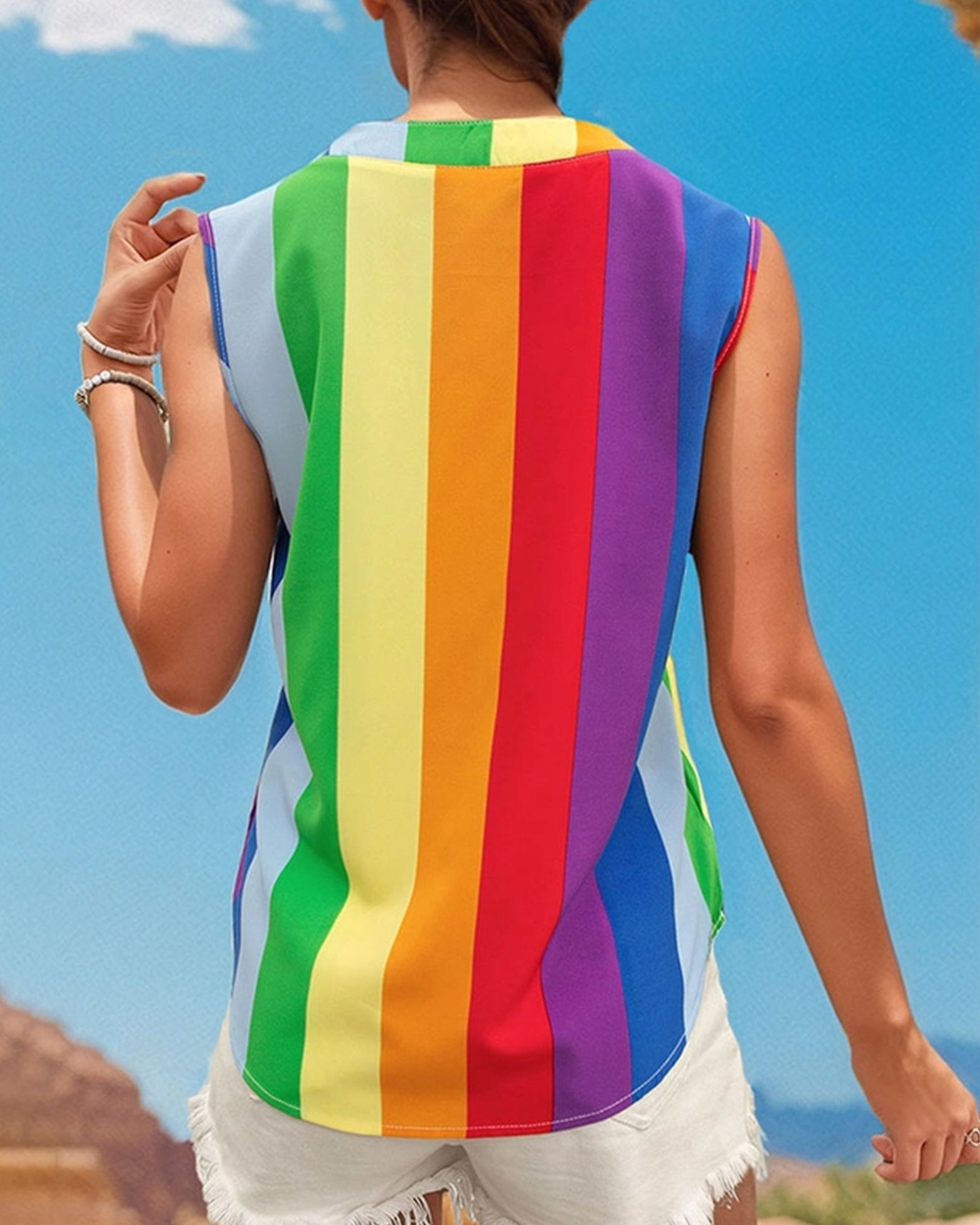 COLORFUL STRIPED V-NECK SHIRT BLOUSE