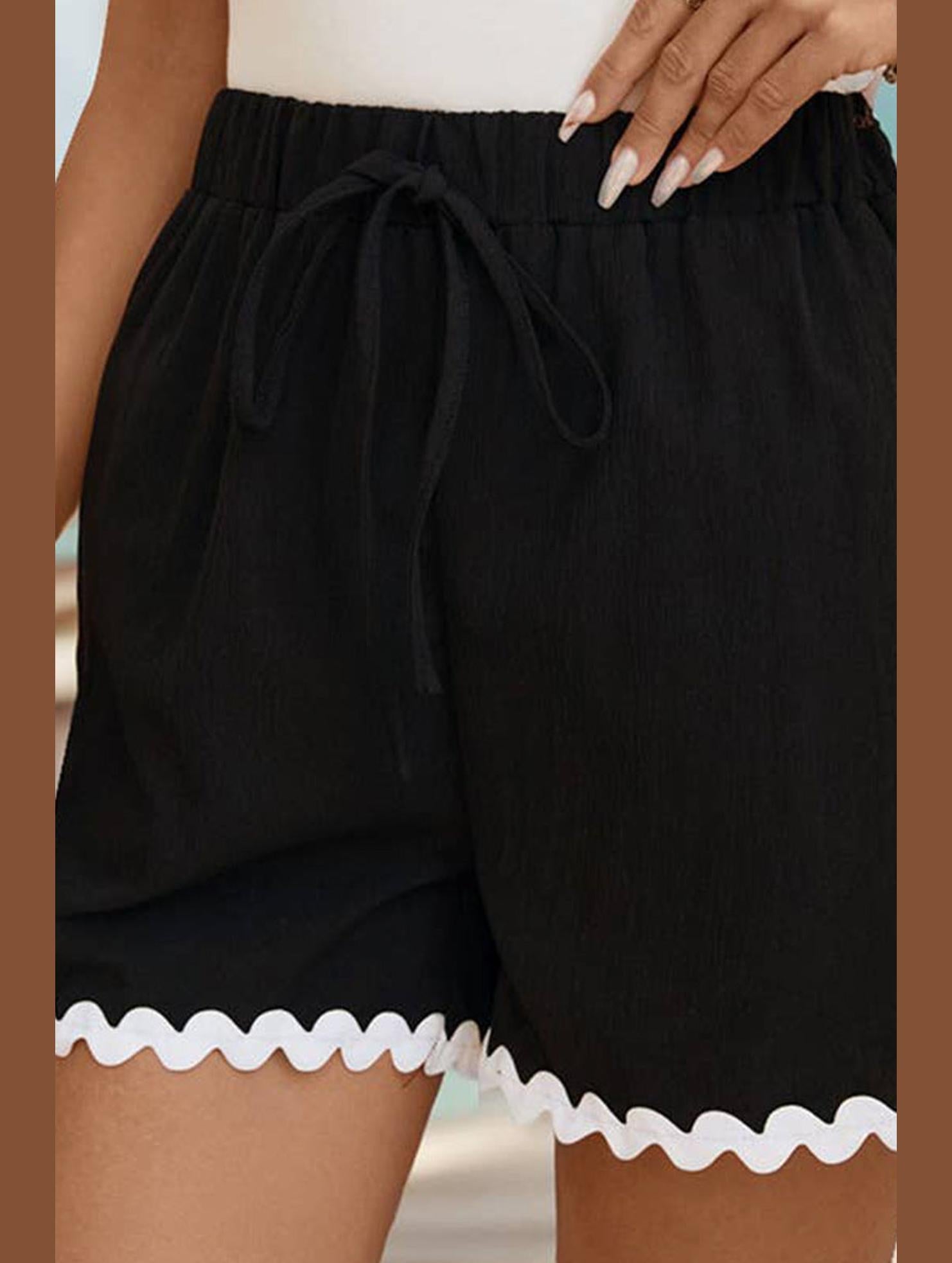 CONTRAST COLOR LACE CASUAL ELASTIC SHORTS_CWBSP0268