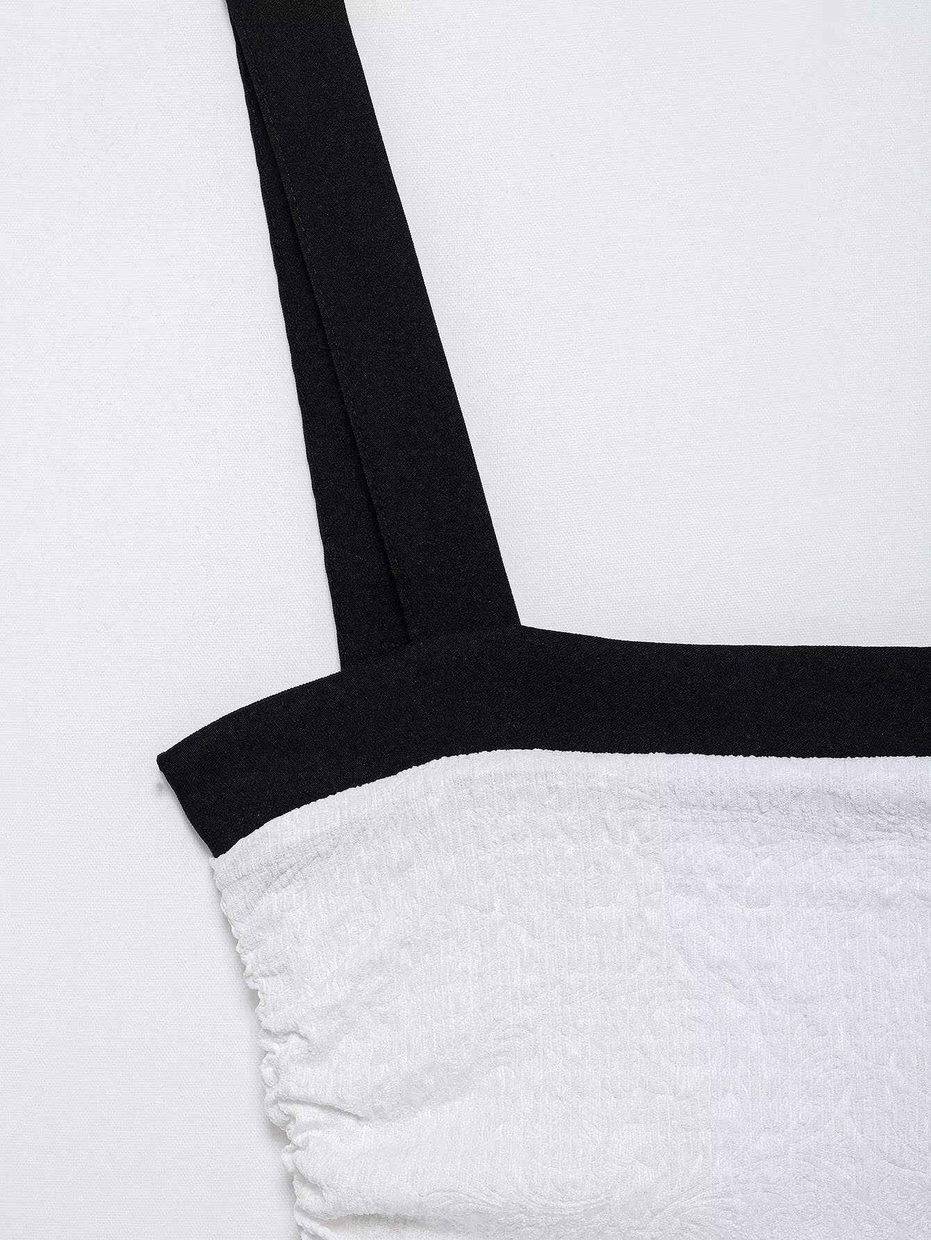 Contrast color one line collar short dress