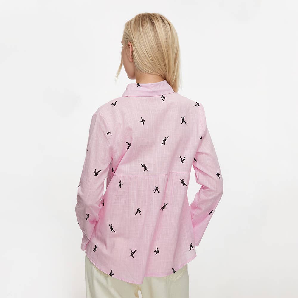 Cotton and linen animal print casual lapel shirt