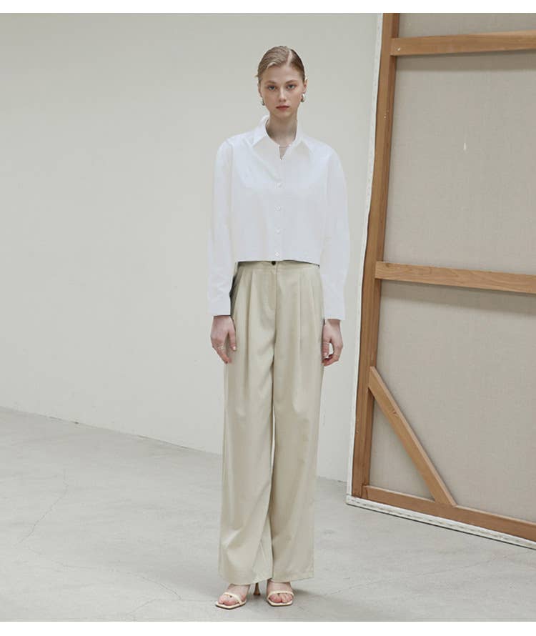 Cotton hem elastic waistband solid color shirt