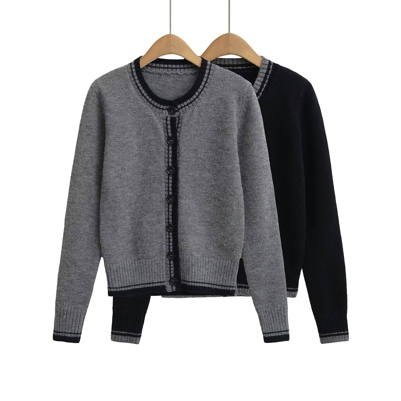 Crew-neck color matching conventional cardigan