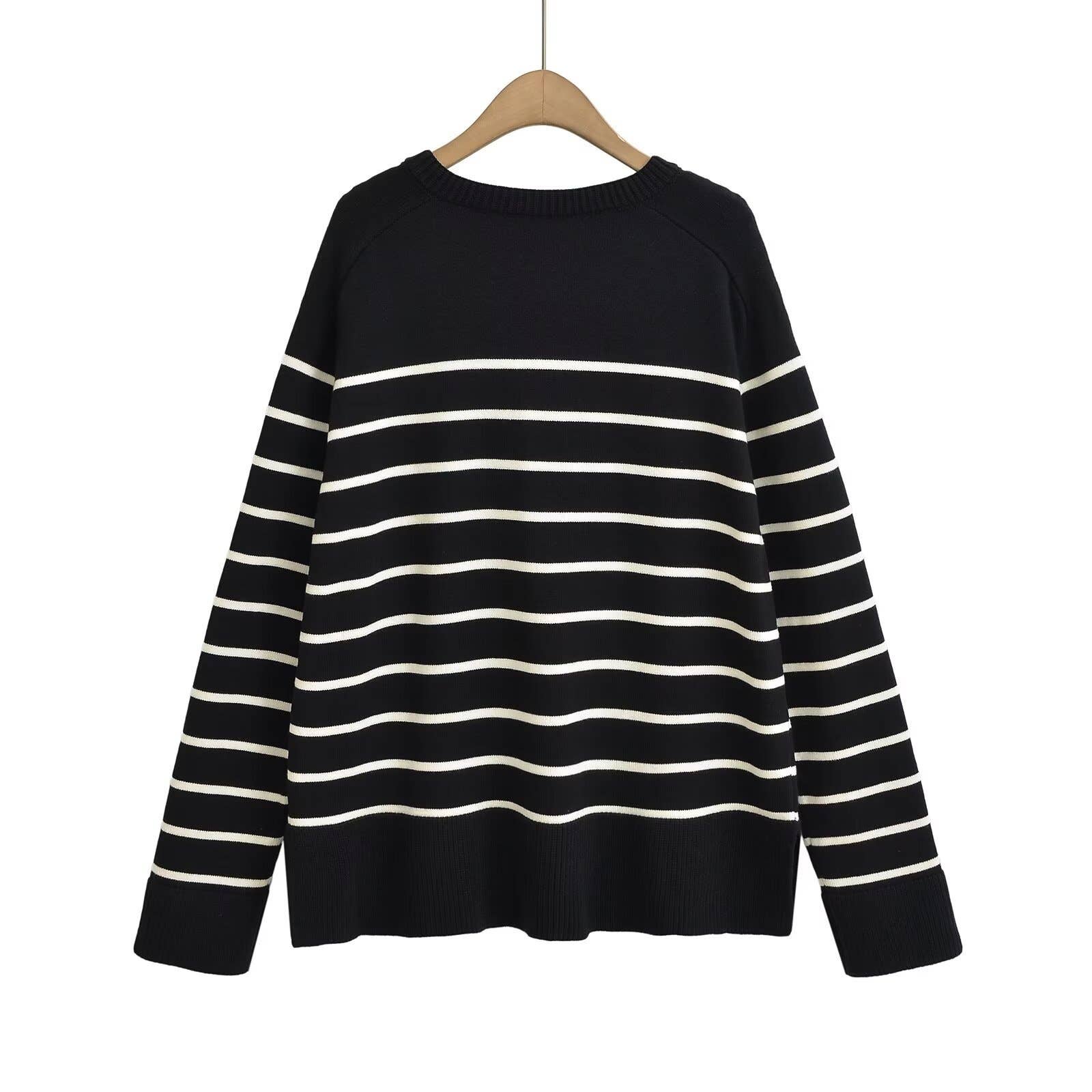 Crew-neck color-striped single-breasted cardigan