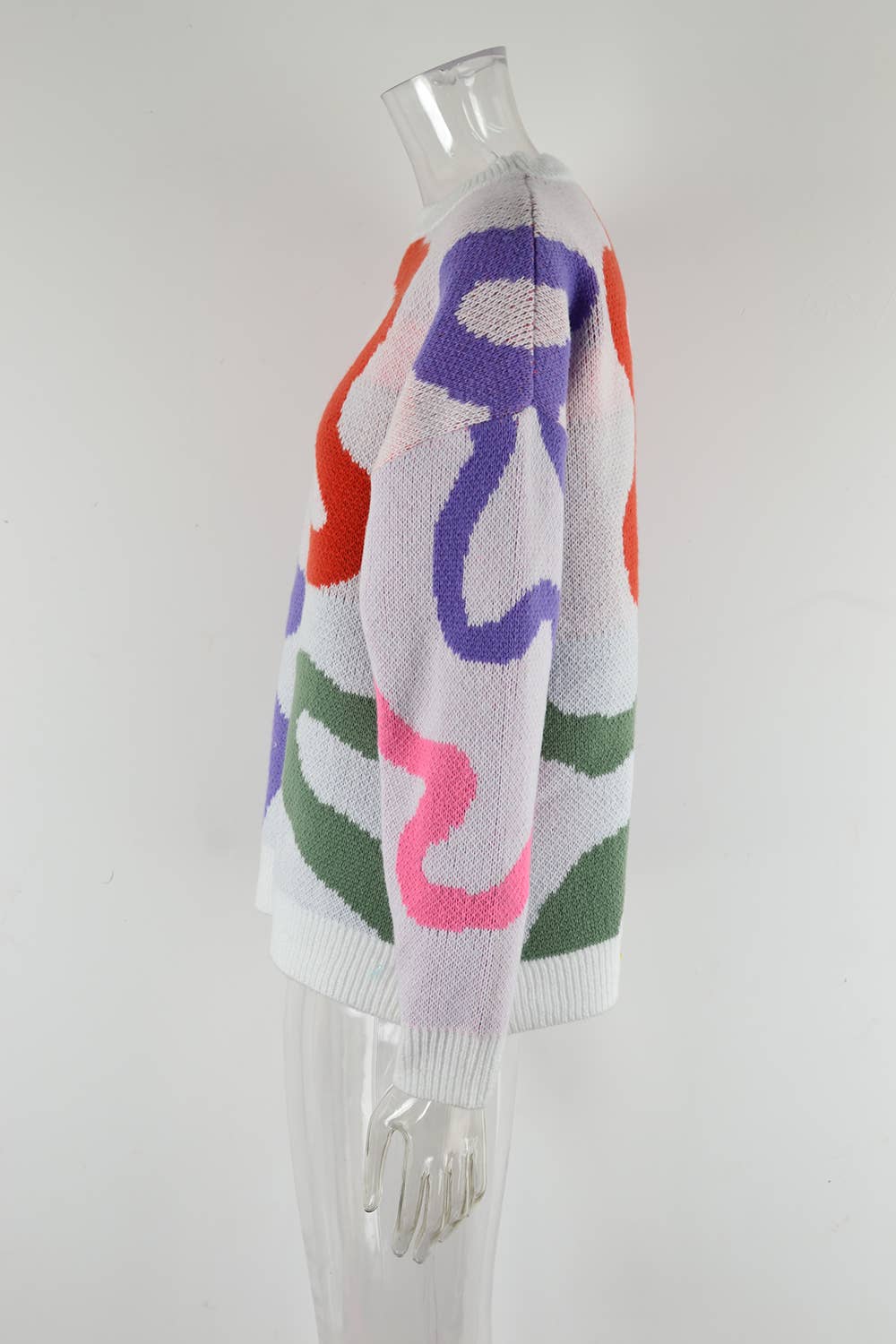 CREW-NECK GEOMETRIC LOOSE PULLOVER SWEATER