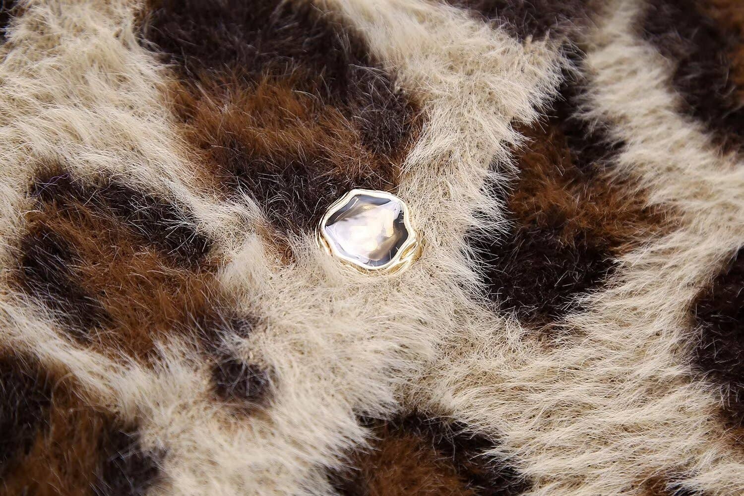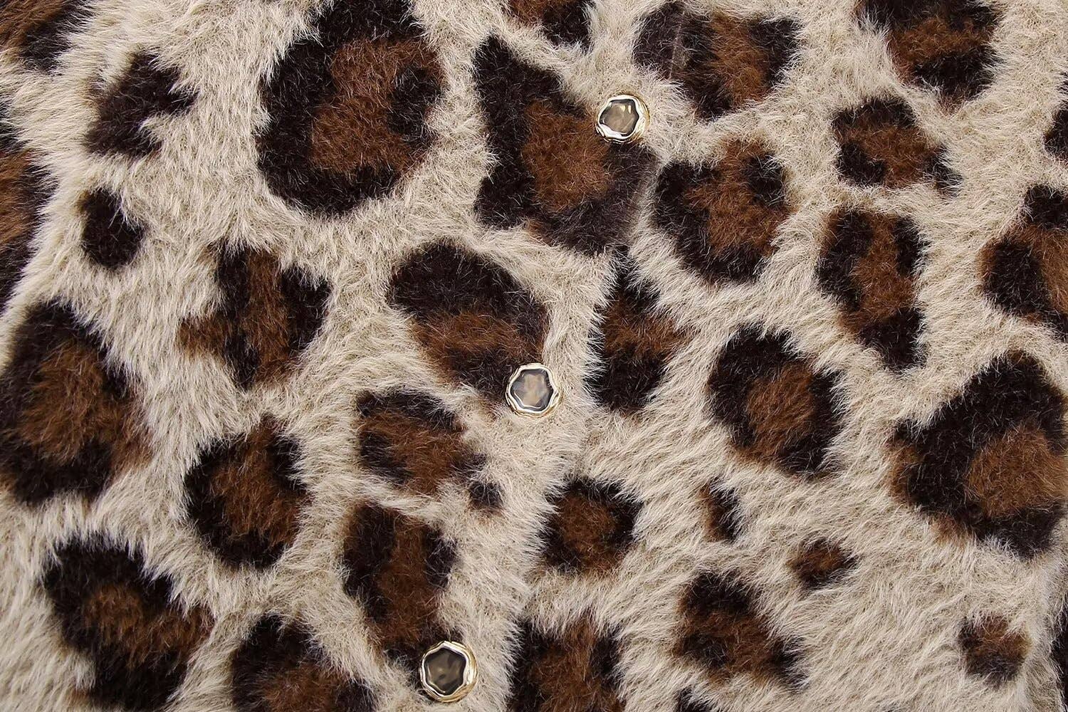 CREW-NECK LEOPARD PRINT SINGLE-BREASTED CARDIGAN