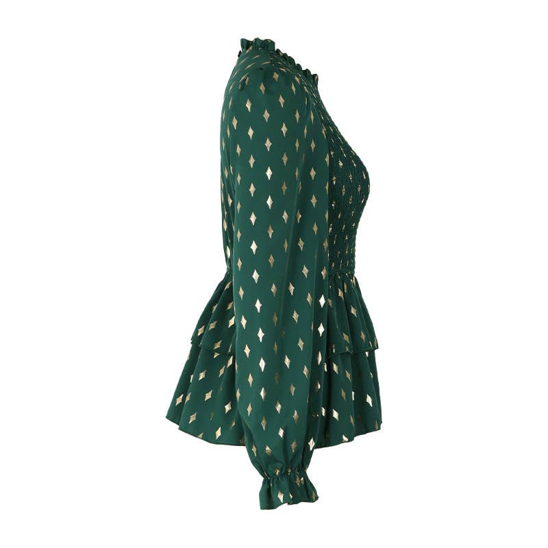 CREW-NECK LONG SLEEVE GOLD PRINT BLOUSE