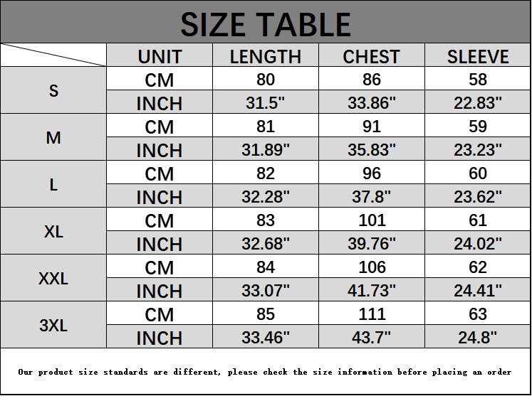 SIZES : S,M,L,XL,XXL,3XL