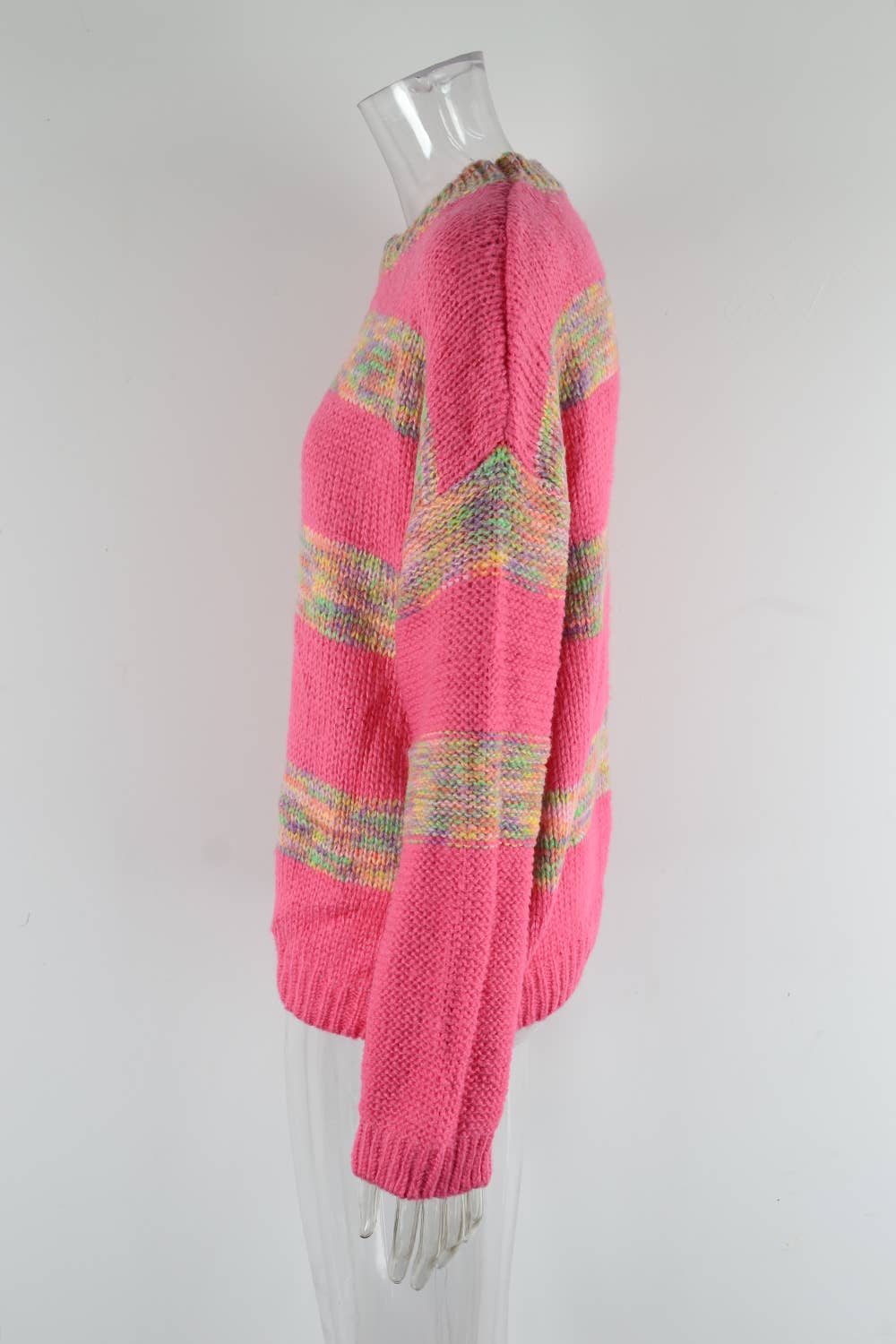 CREW NECK PULLOVER COLOR MATCHING SWEATER