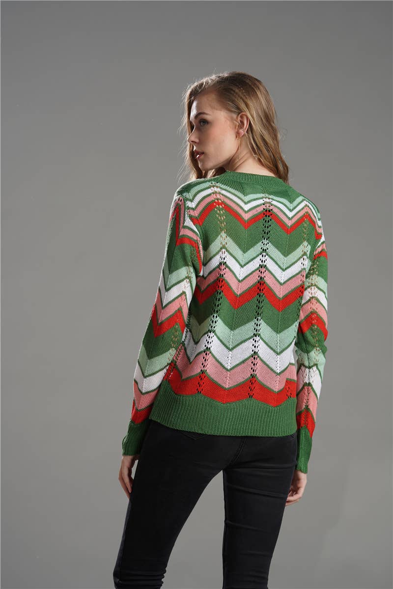 Crew neck sweater pullover striped rainbow top