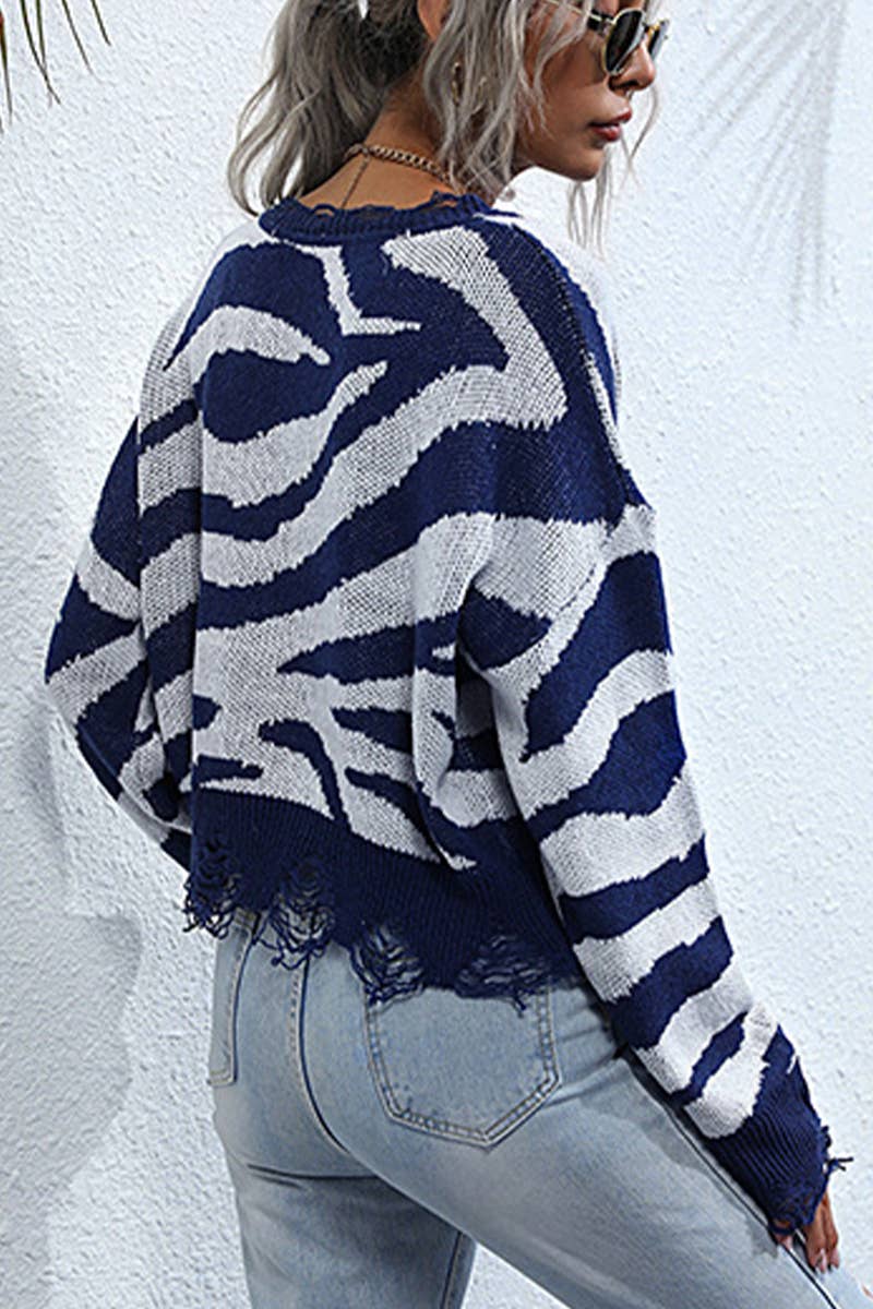 CREW NECK SWEATER STRIPED SHORT STYLE SWEATER