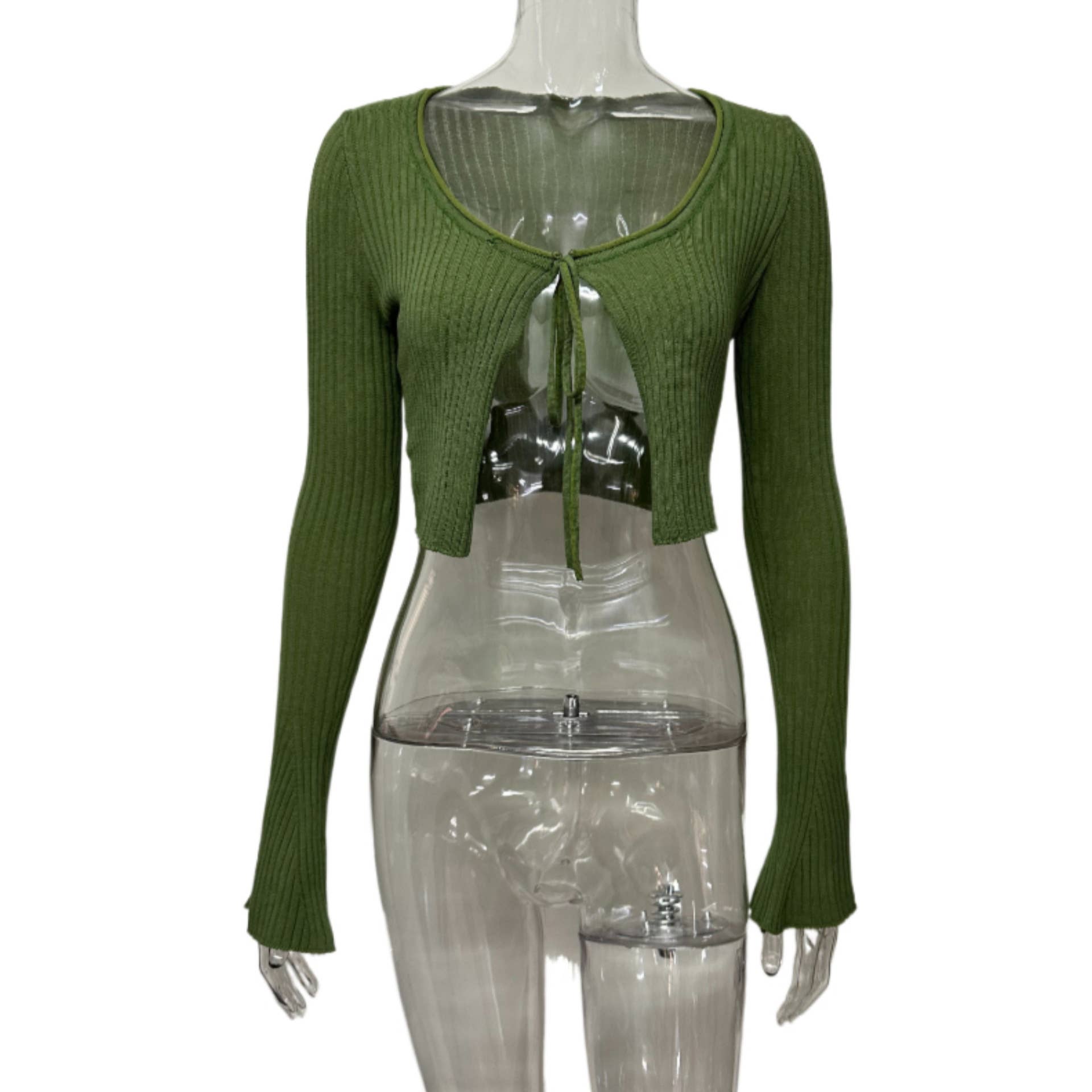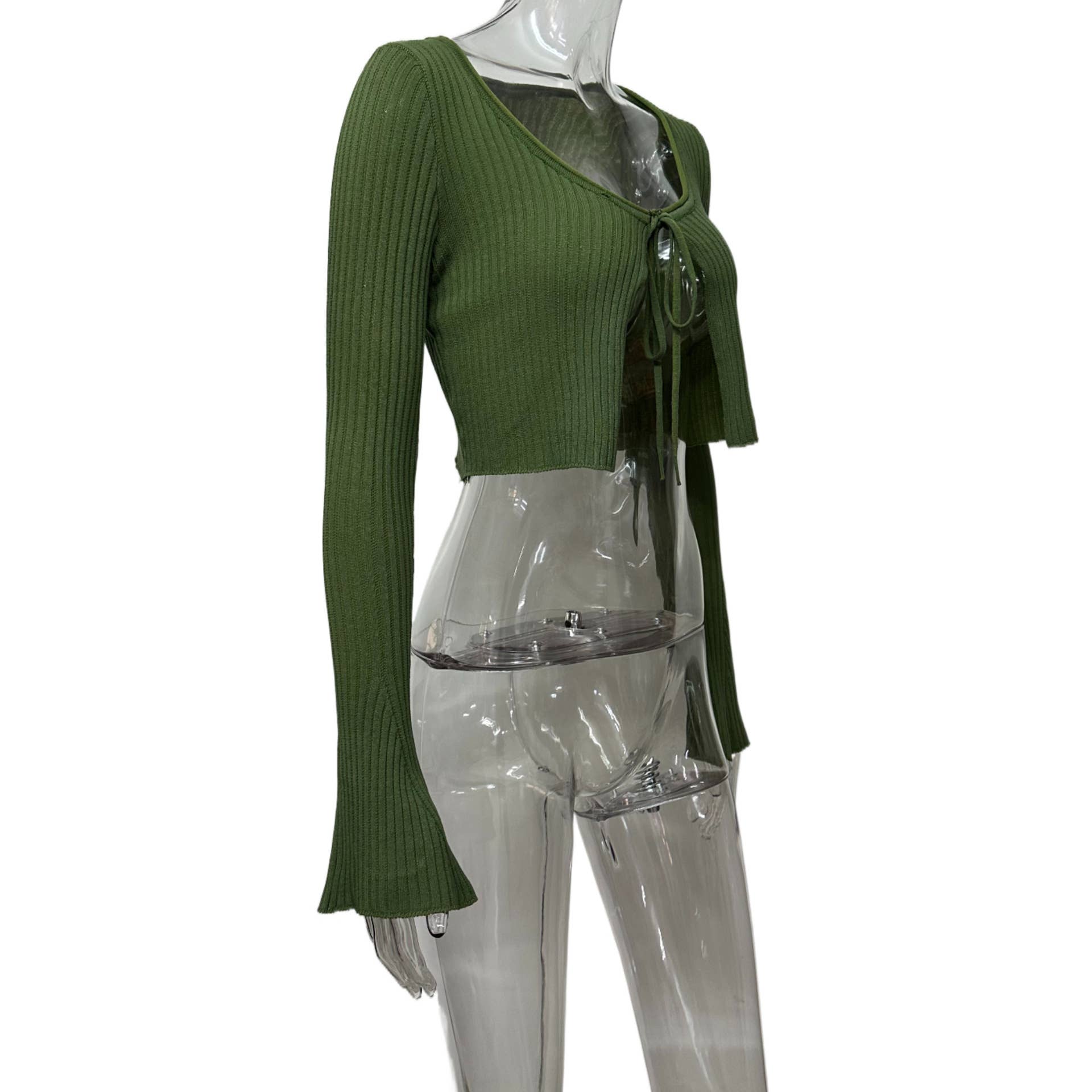 Crop top flared sleeve knitted lace-up cardigan