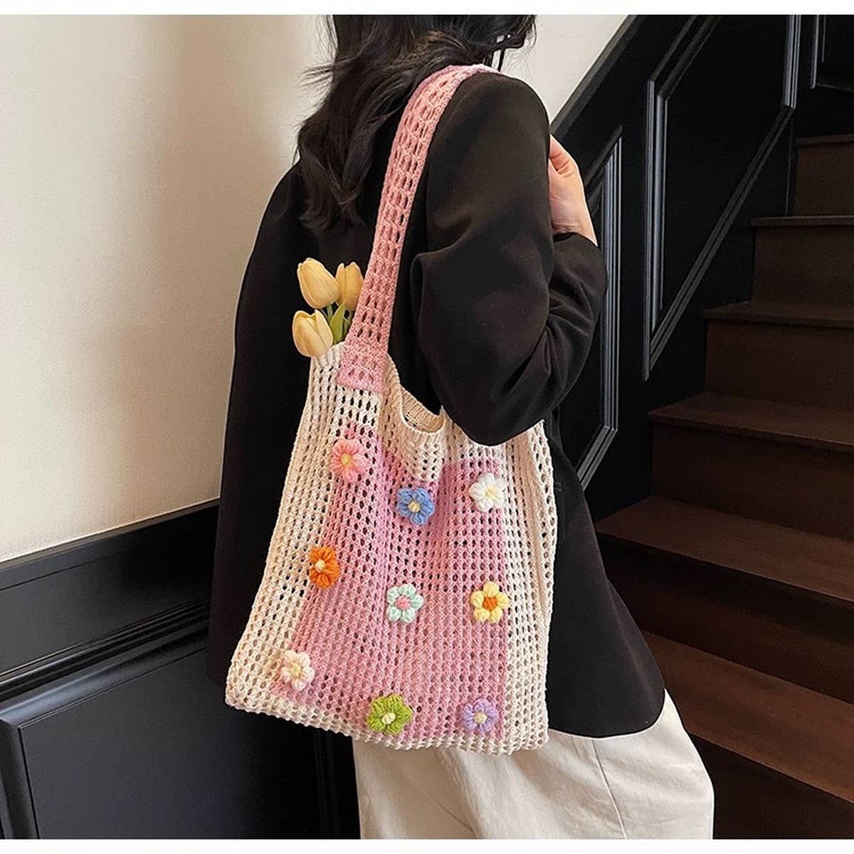 2025 LARGE BOHO KNIT TOTE BEACH TRAVEL BAG