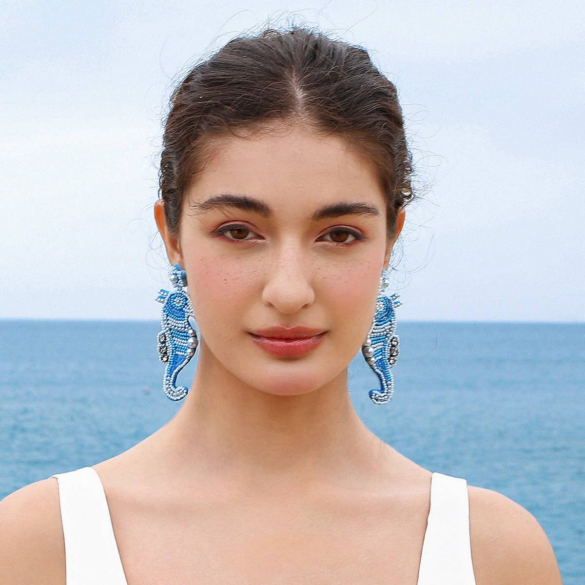 CUTE CARTOON DOLPHIN STARFISH RICE BEAD EARRINGS\nDIMENSIONS: OS(2)\n100% GLASS\nMADE IN CHINA \nWOMEN'S LOOSE EARRINGS, WOMEN'S BOHEMIAN EARRINGS, RICE BEAD EARRINGS, HAND-WOVEN EARRINGS, TASSEL EARRINGS