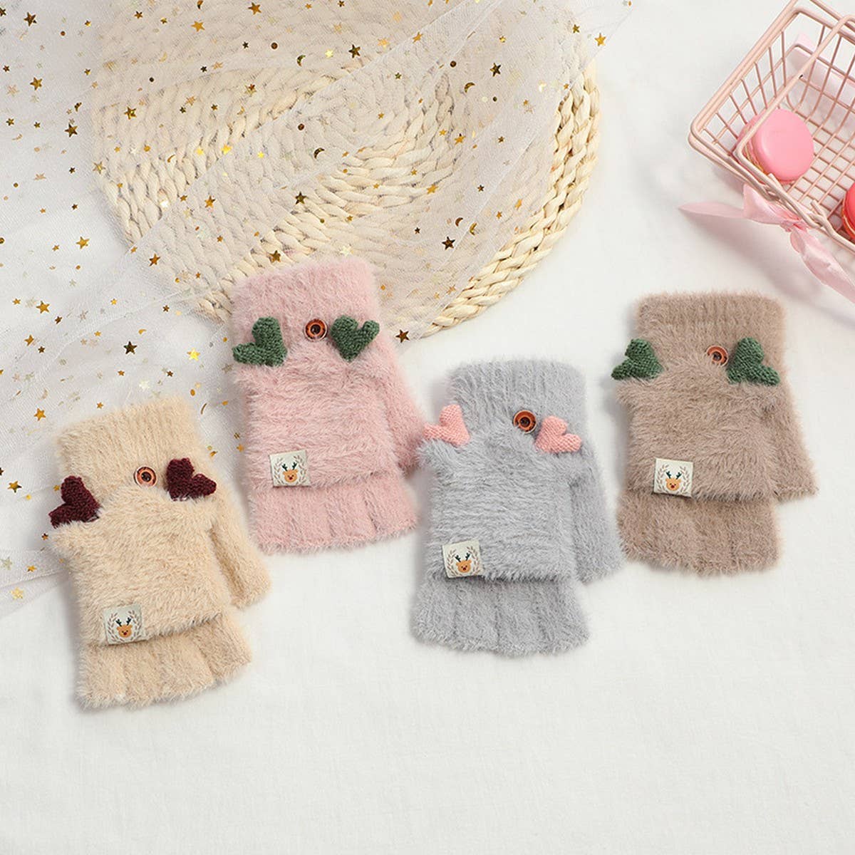 CUTE ELK ANTLER WARM HALF FINGER FLAP GLOVES_CWAG0160