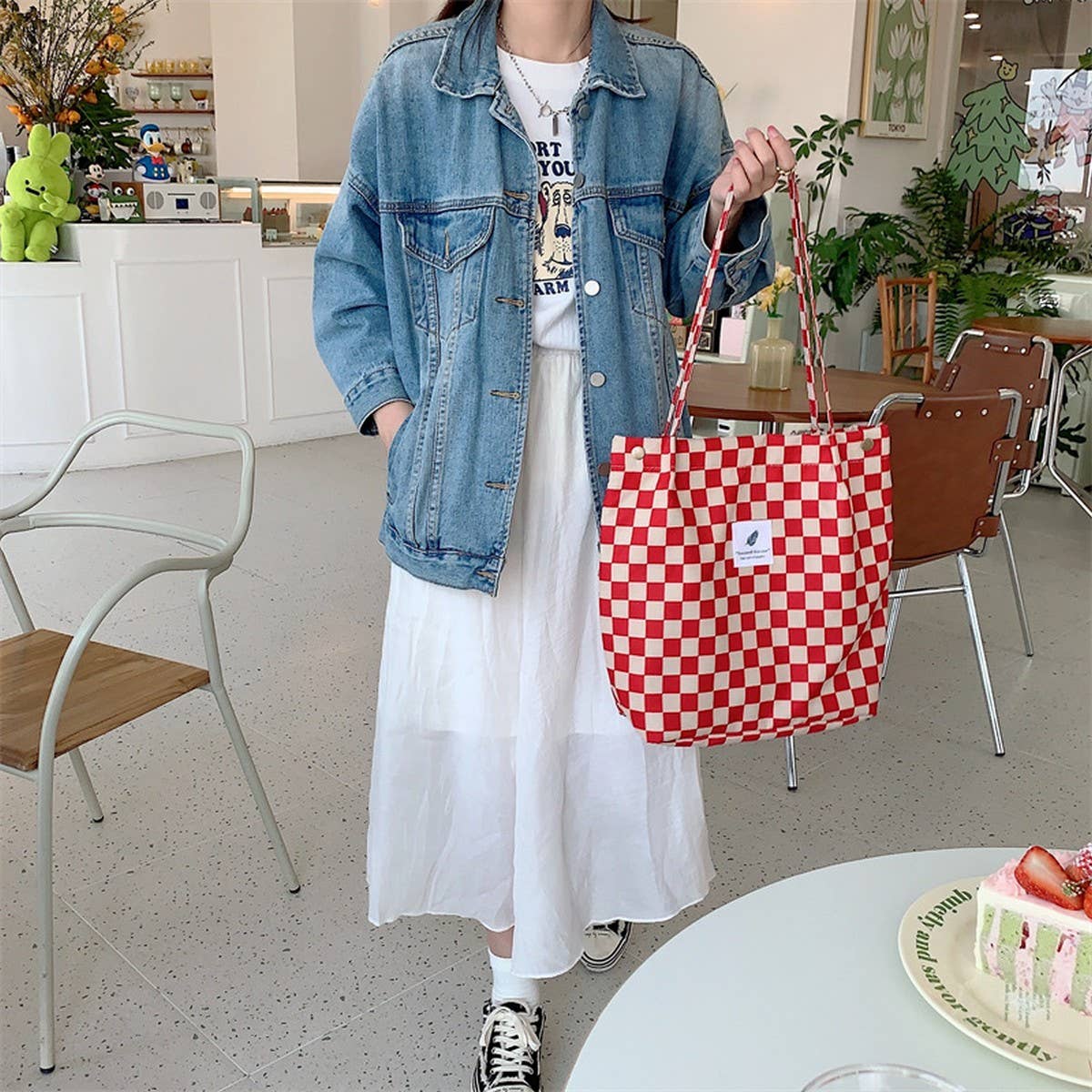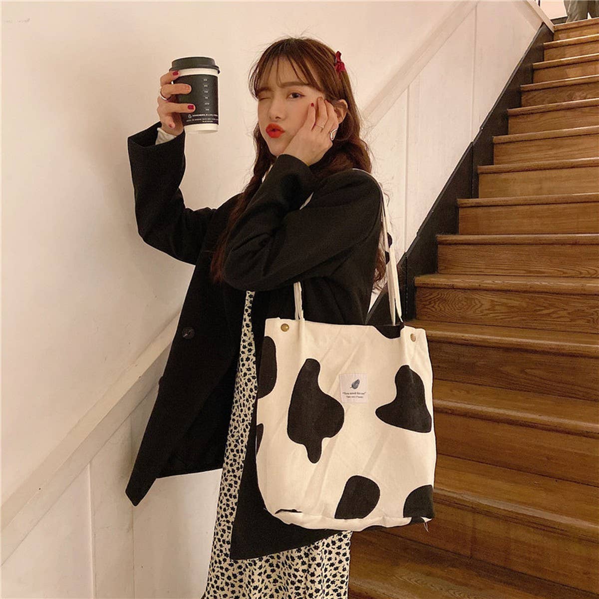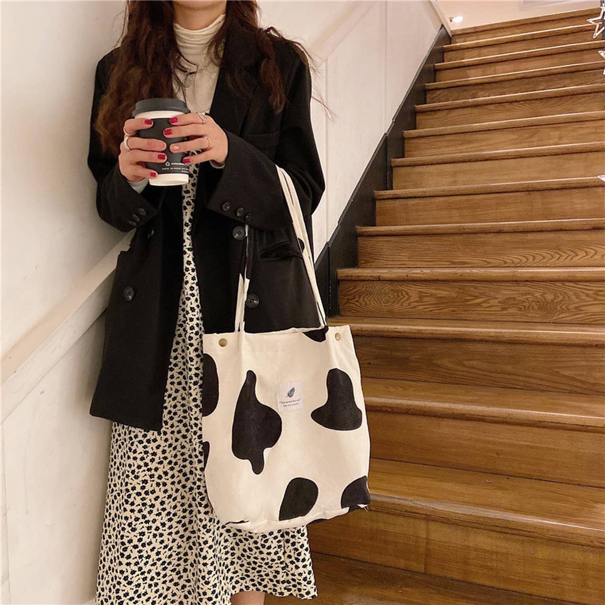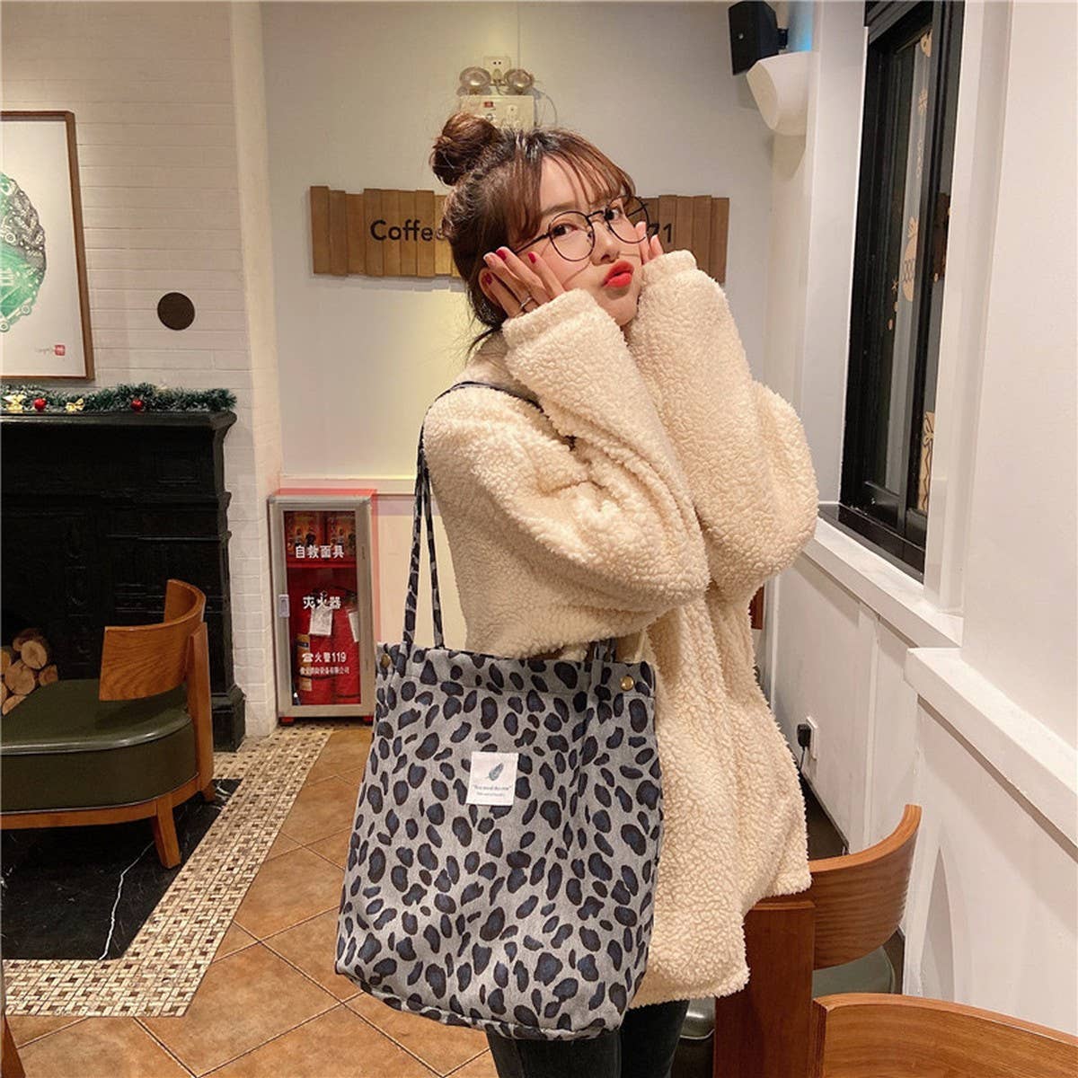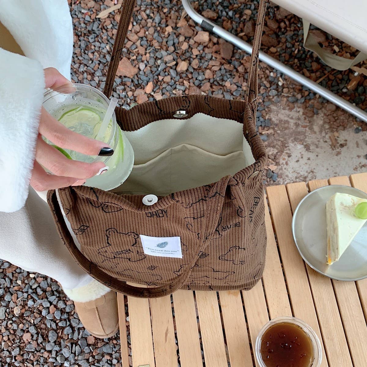CORDUROY SNAP-BUTTON LARGE-CAPACITY SHOULDER BAG