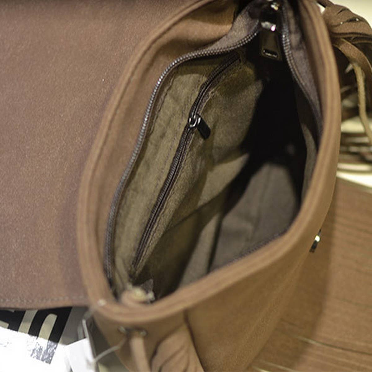 BRAIDED BELT BUCKLE NUBUCK TASSEL SHOULDER BAG