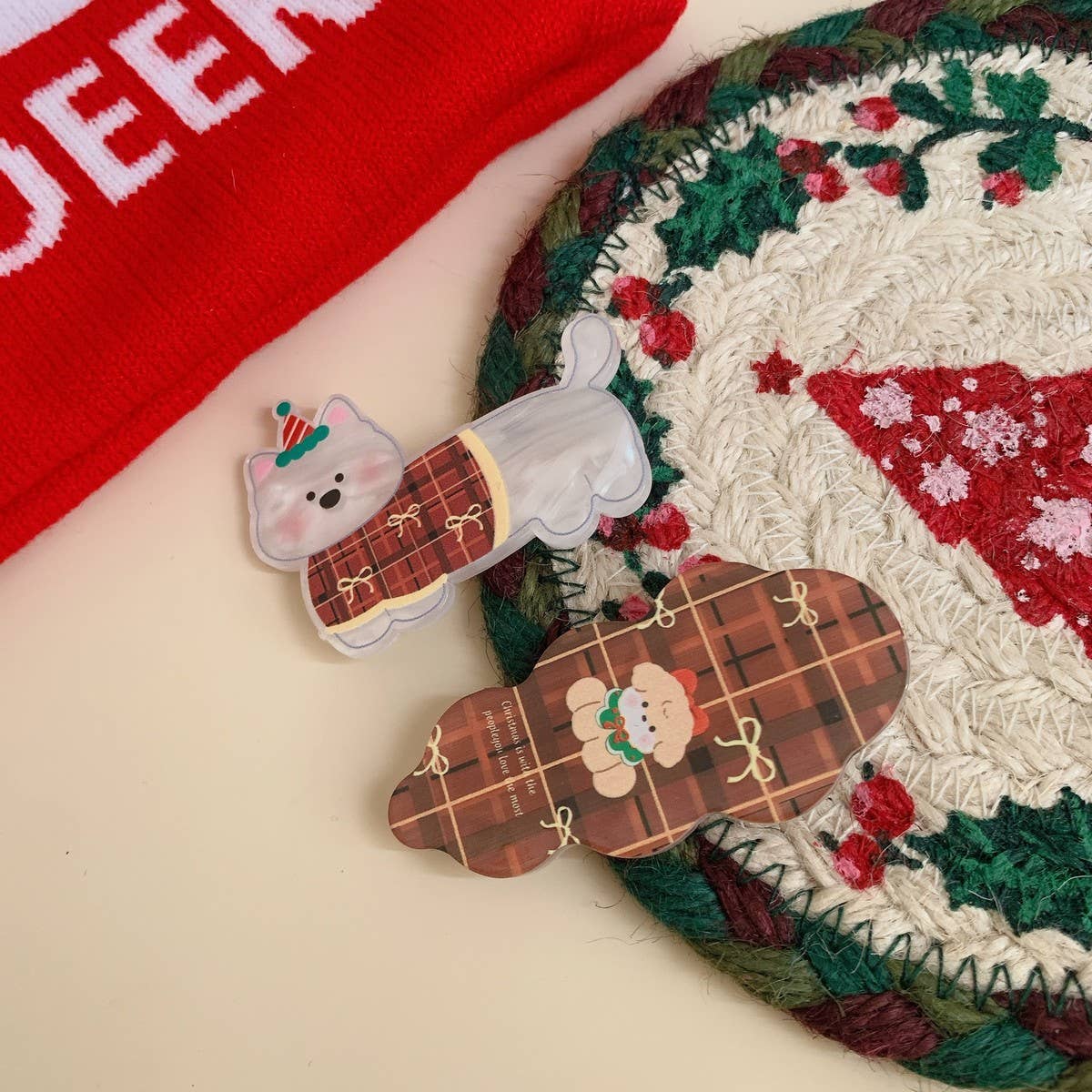 CHRISTMAS CARTOON CAT DOG ACRYLIC HAIR CLIP