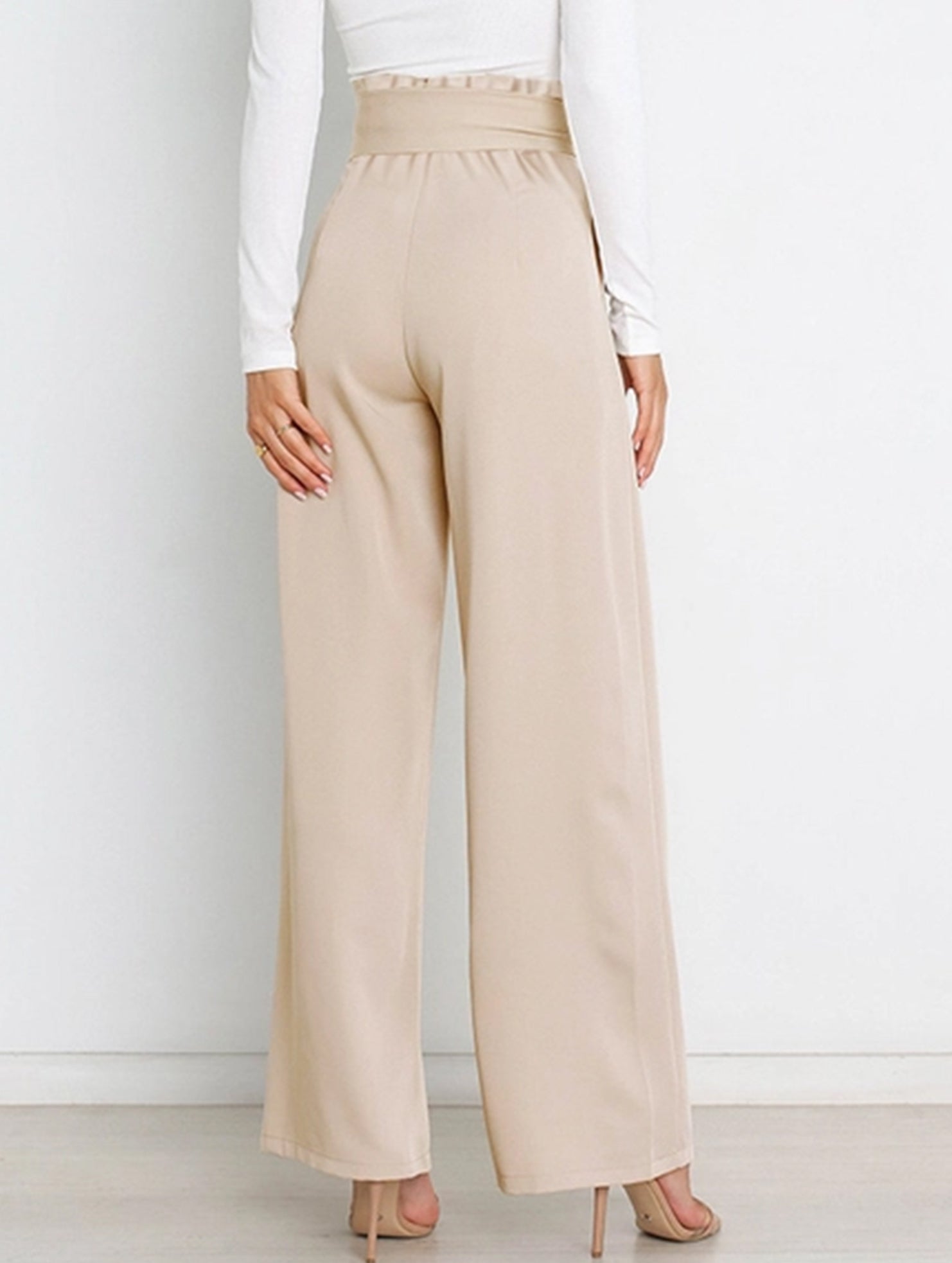 WOMEN TIED WAIST WIDE LEG OFFICE WORK PANTS