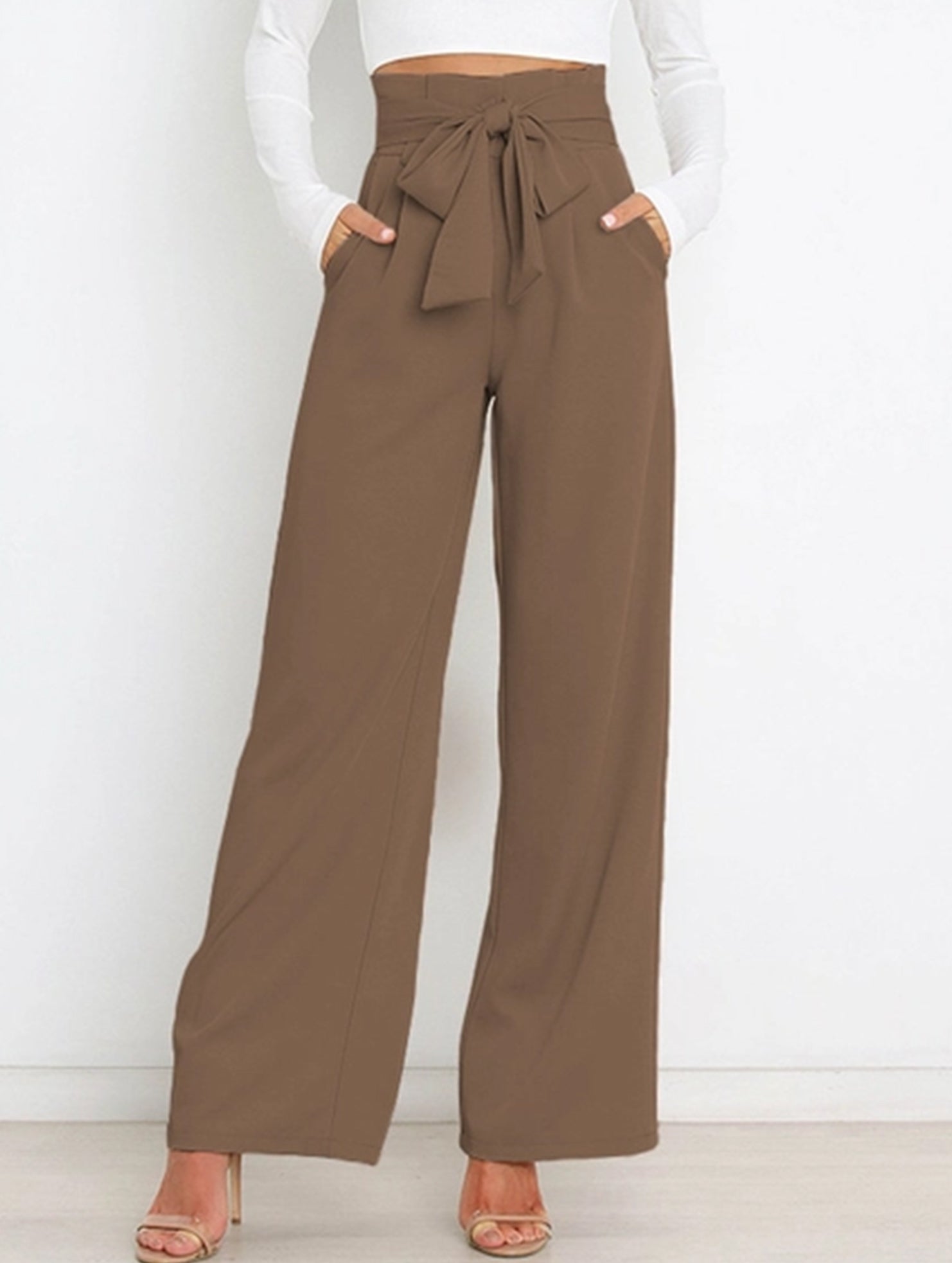 WOMEN TIED WAIST WIDE LEG OFFICE WORK PANTS 100% POLYESTER,SIZE S-M-L-XL,MADE IN CHINA,WOMEN BLAZER, BATHING SUITS, CROCHET CARDIGAN, CABLE KNIT SWEATER, WHOLESALE T SHIRTS, BEACH COVER UPS, RUFFLE DRESS, EYELET BLOUSE, PUFF SLEEVE TOP, FLORAL DRESS