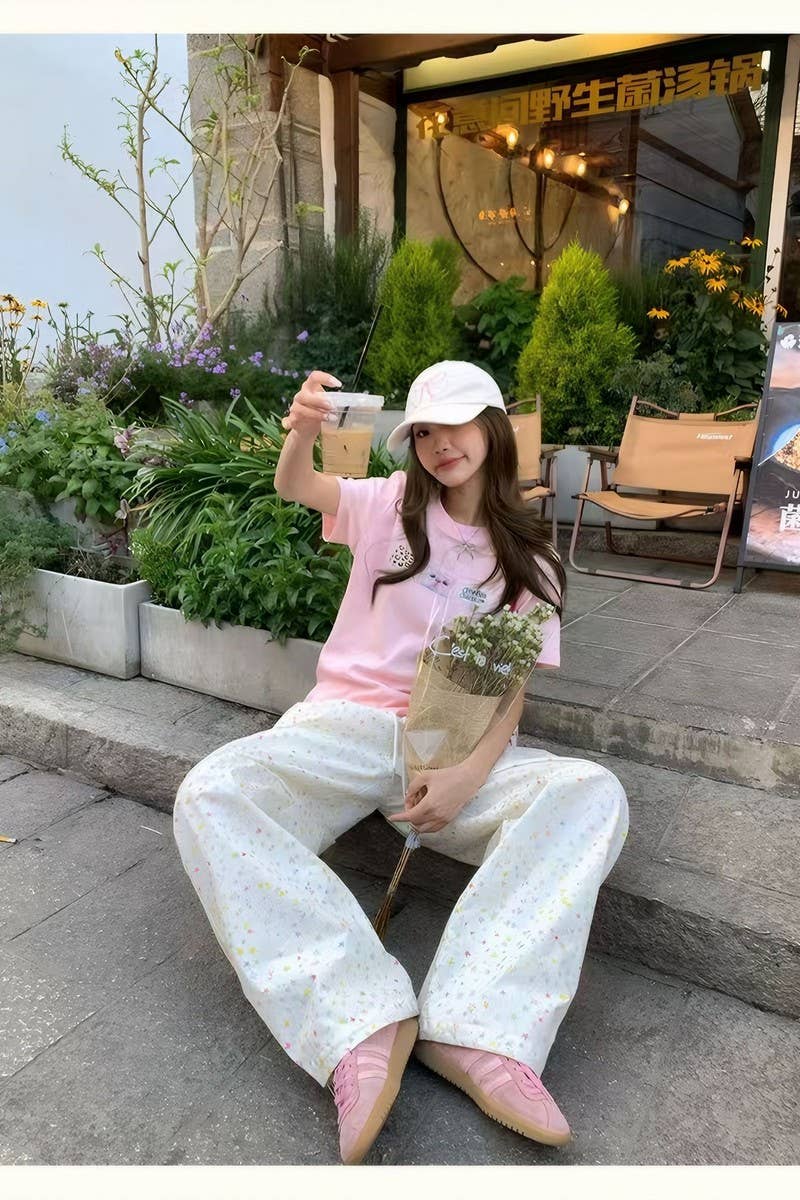 STAR PRINT LOOSE STRAIGHT LEG JOGGER PANTS