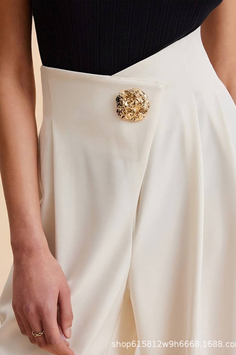 ASYMMETRICAL WAIST HIGH RISE WIDE LEG PANTS
