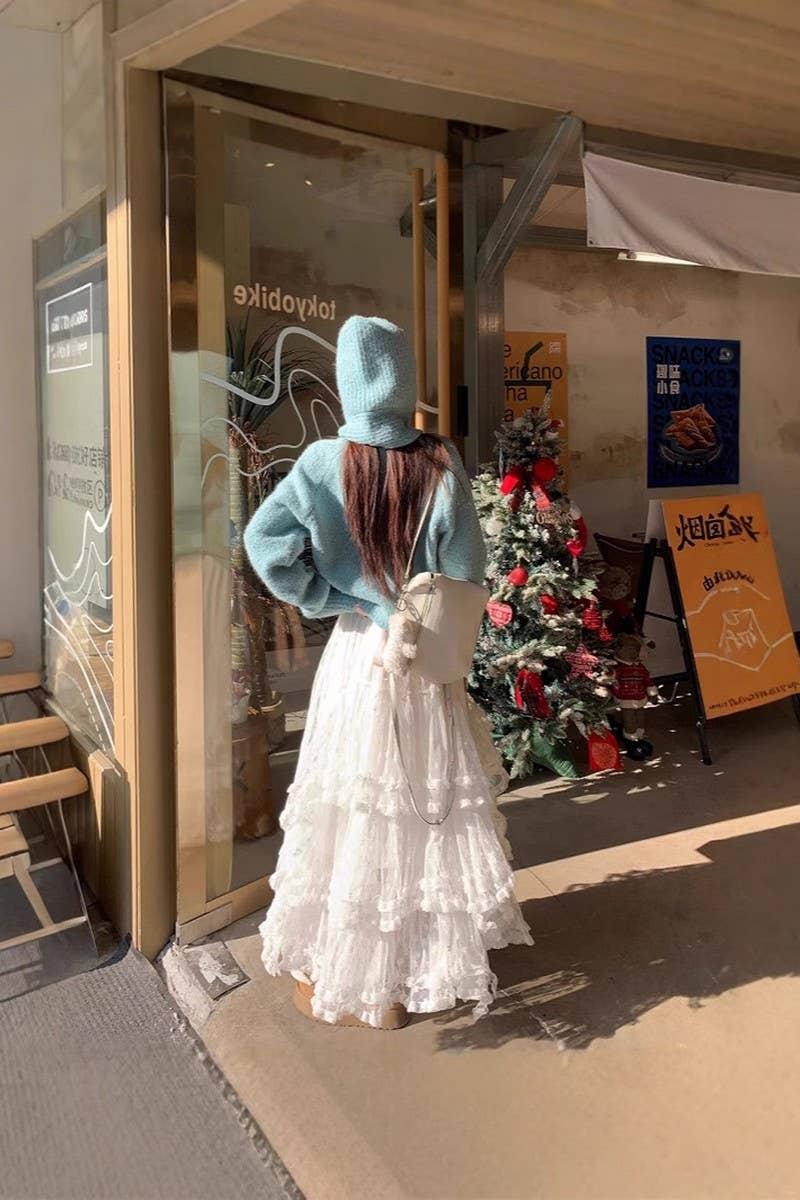 2025 FLORAL MESH RUFFLE IRREGULAR MAXI SKIRT