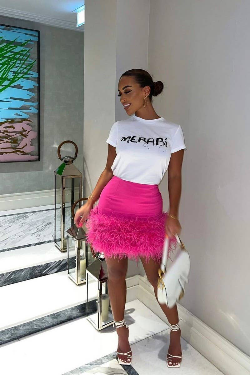 PARTY SEXY SHORT SKIRT FEATHER HIP SKIRT